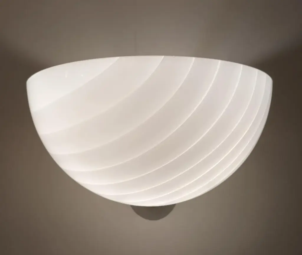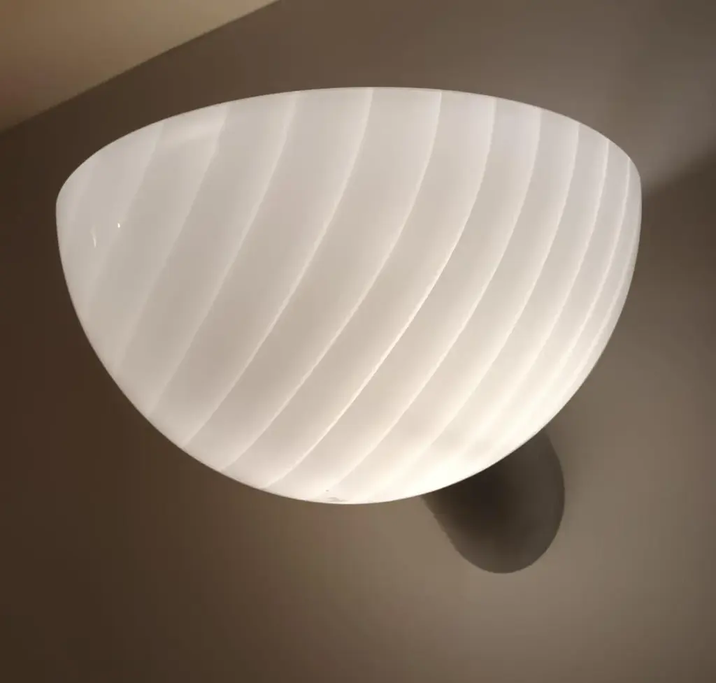 Vintage Italian wall lights with ribbed milky white hand blown Murano glass shades / Made in Italy, circa 1960s 1 light / E26 or E27 type / max 60W