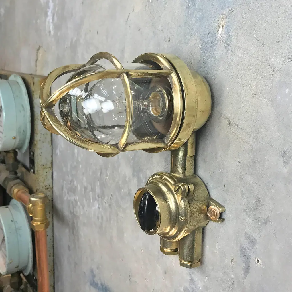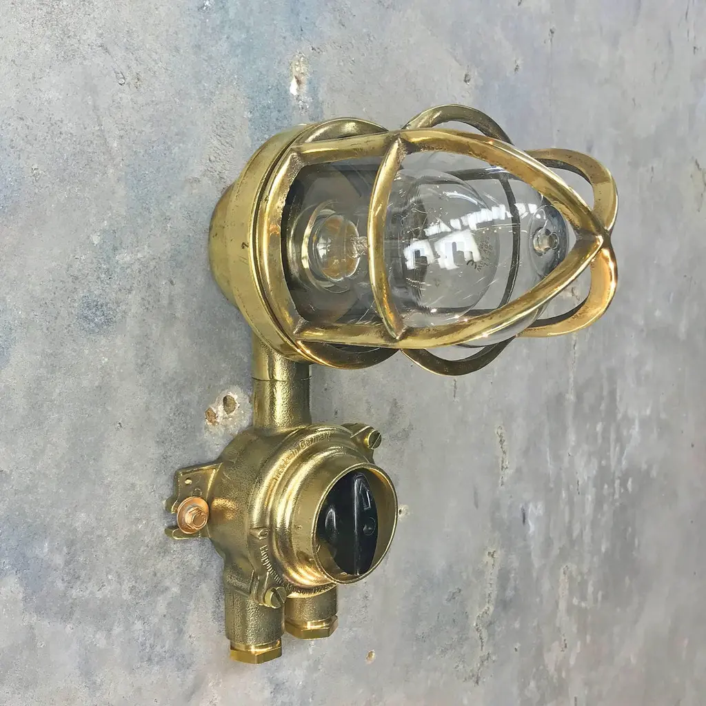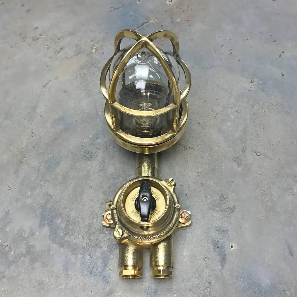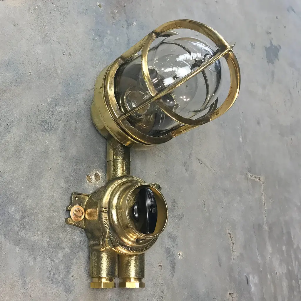 1970's German Brass Wall Lamp With Glass Dome & Isolator Switch Ip54 Edison Bulb