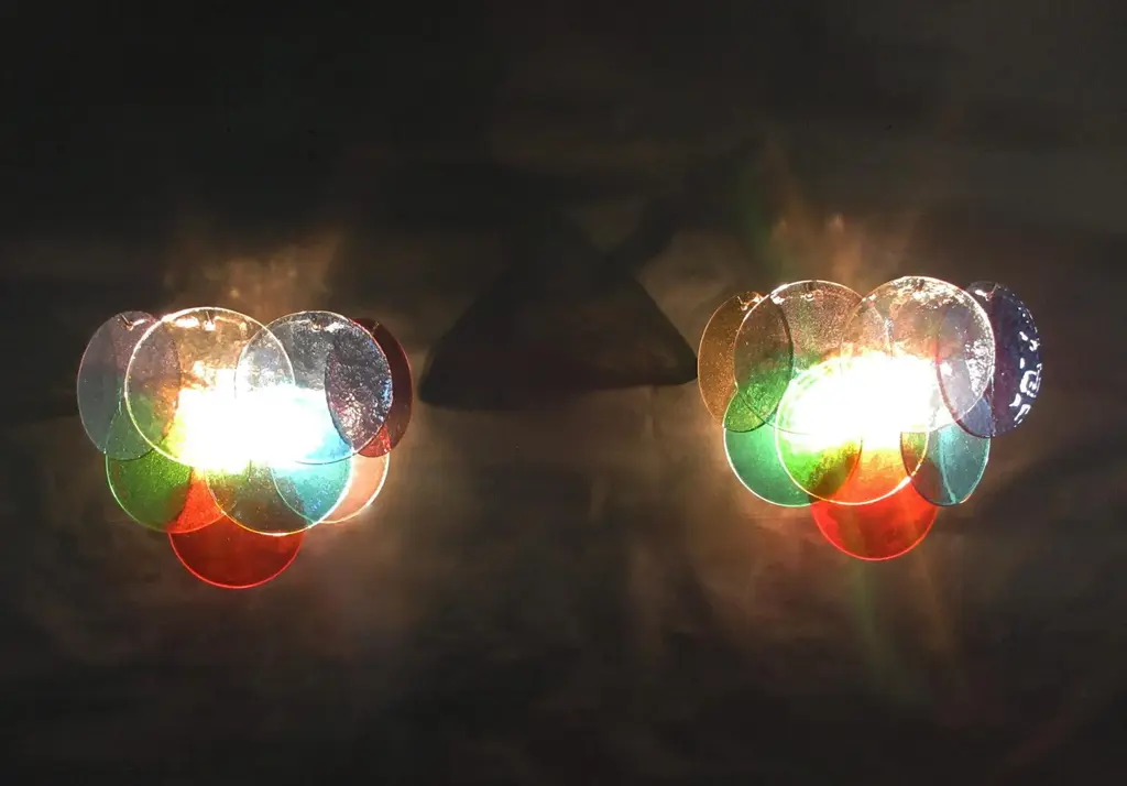 1970s Pair Of Vistosi Sconces 10 Multicolored Murano Glasses