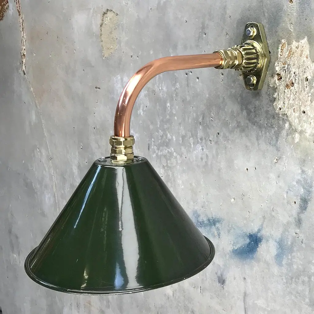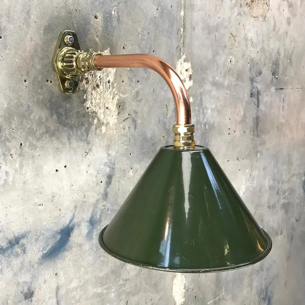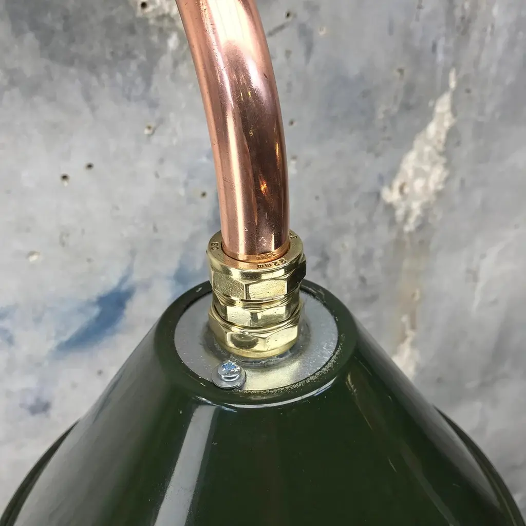 1980s Ex British Army Light Shade / Copper And Brass Cantilever, Original Green