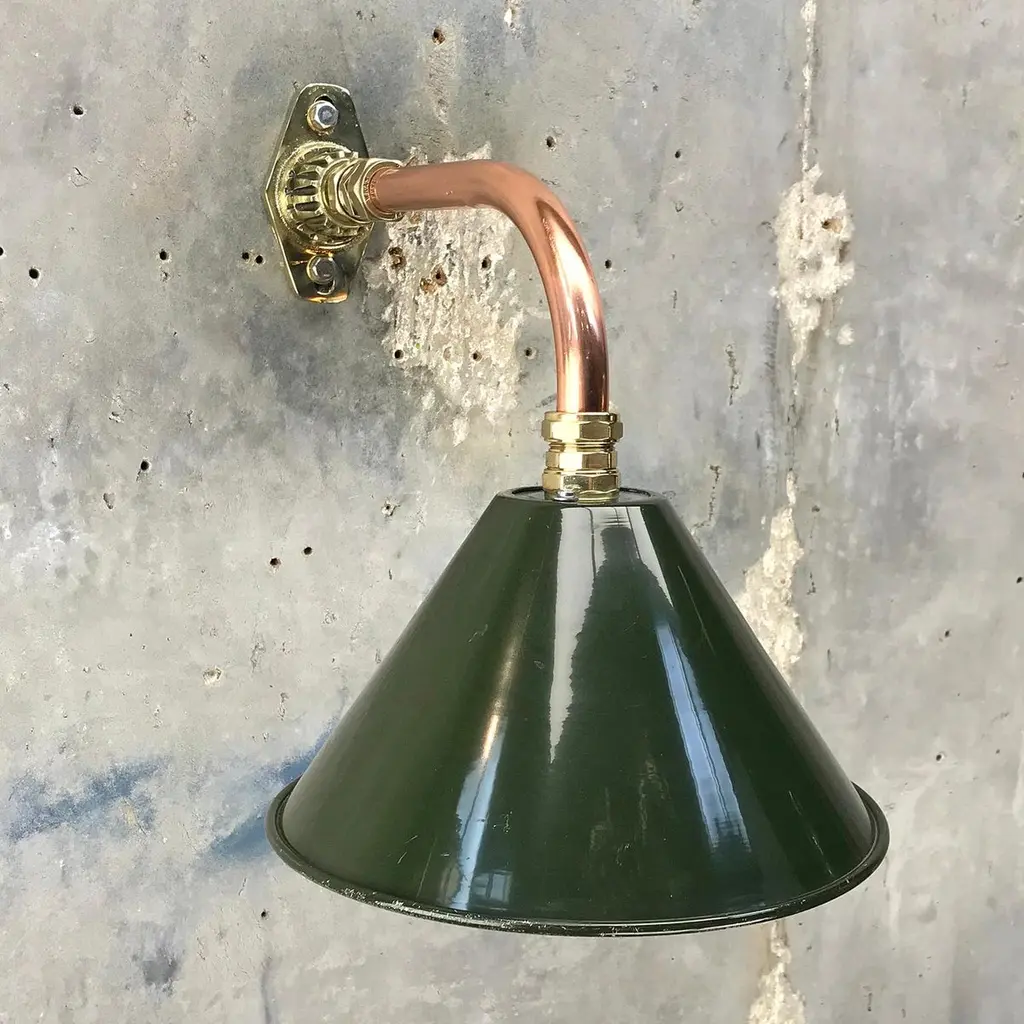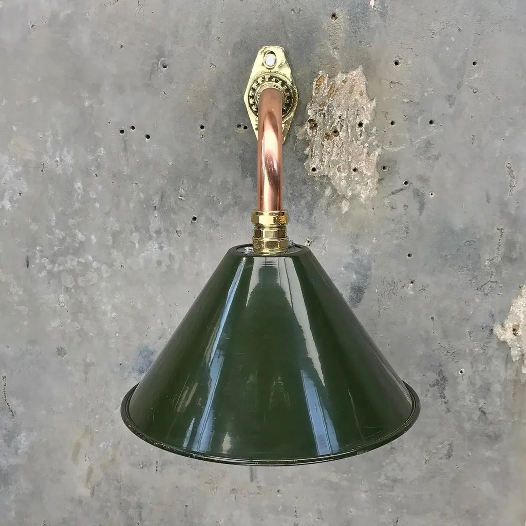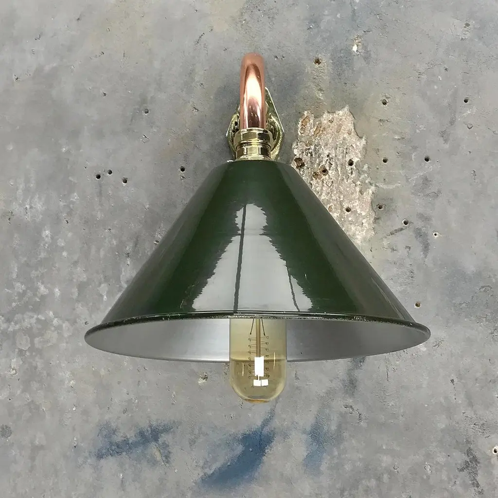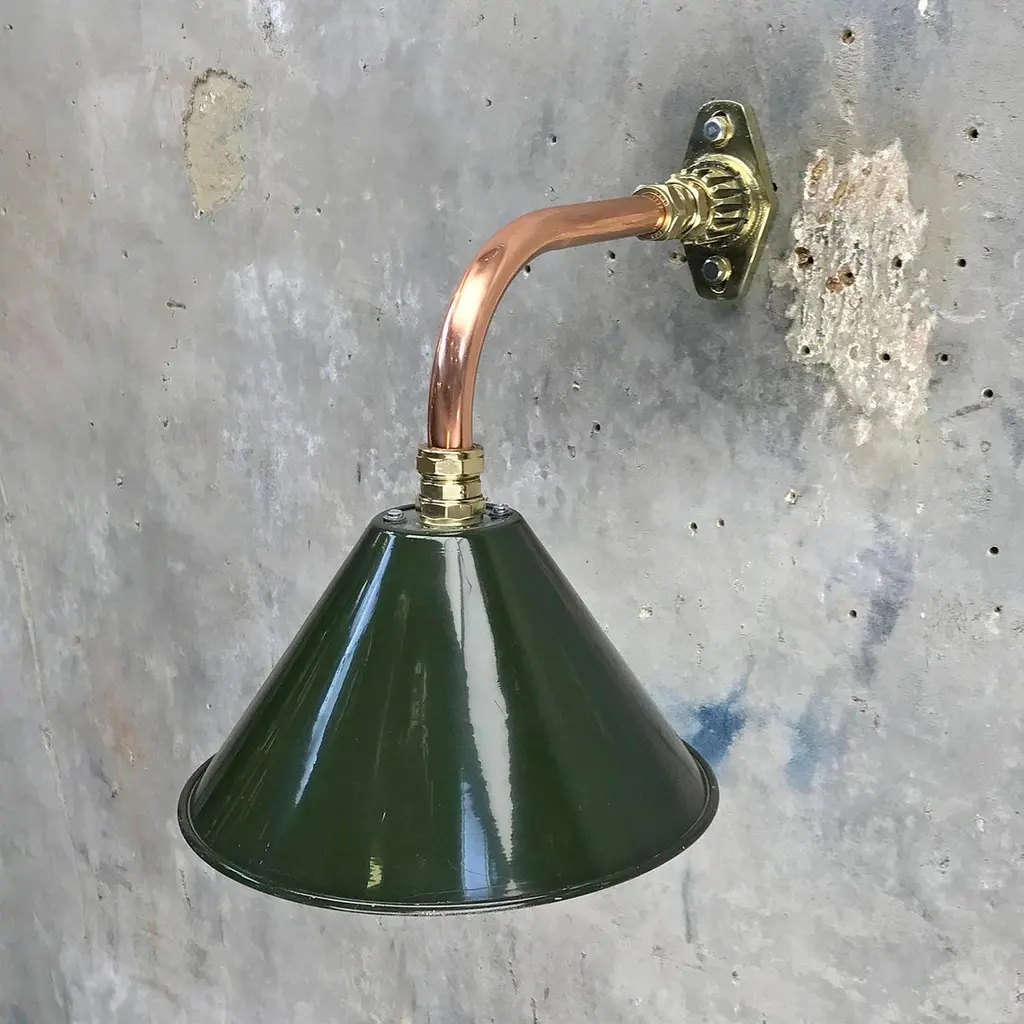 1980s Ex British Army Light Shade / Copper And Brass Cantilever, Original Green