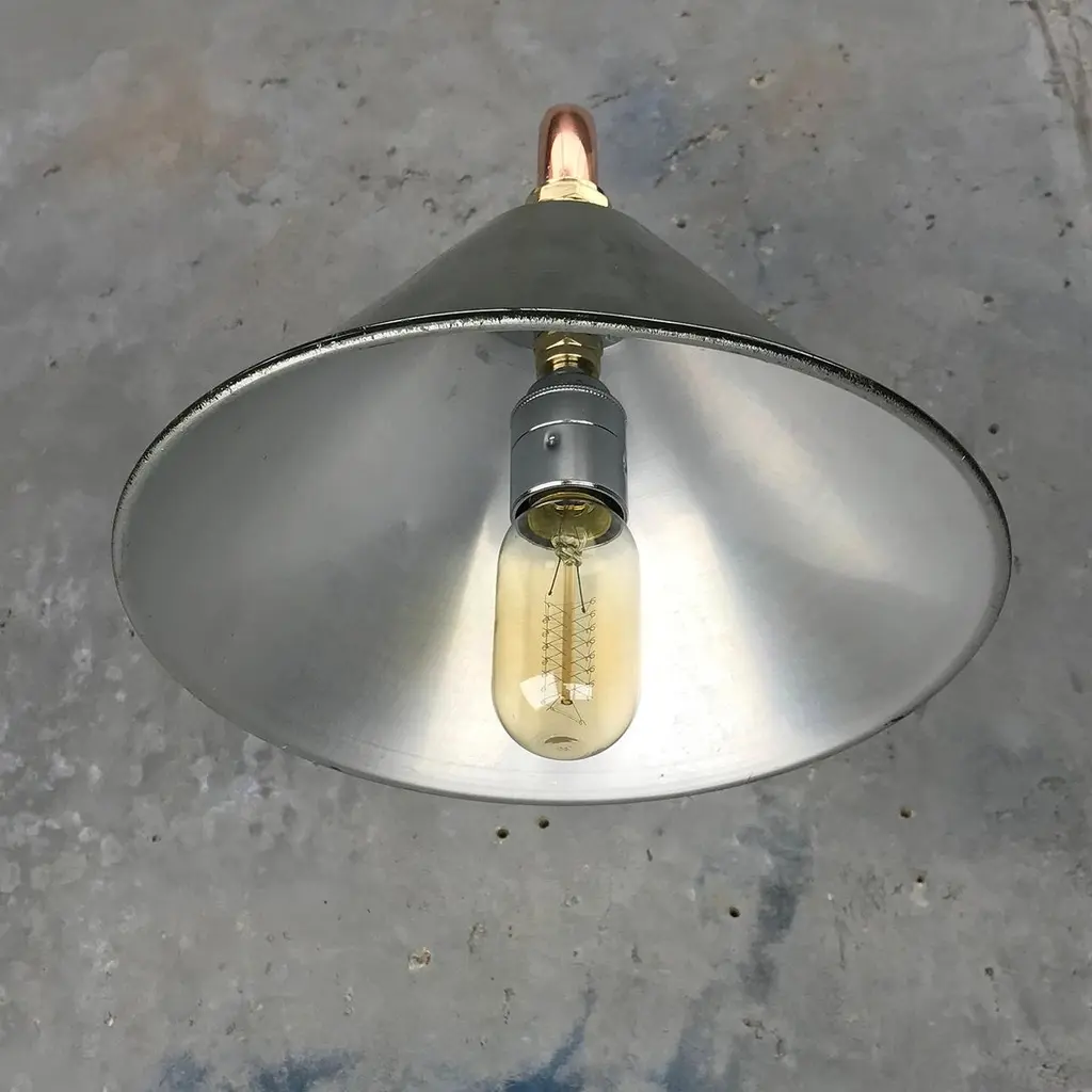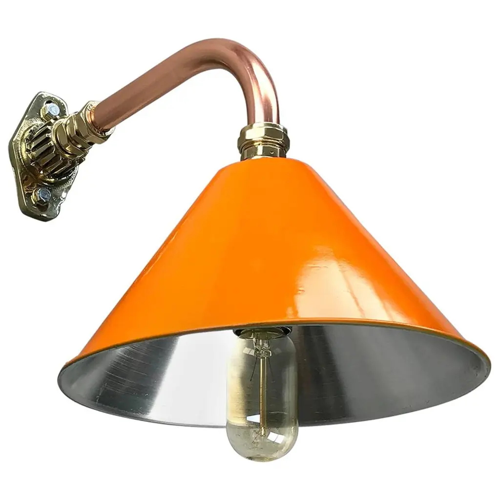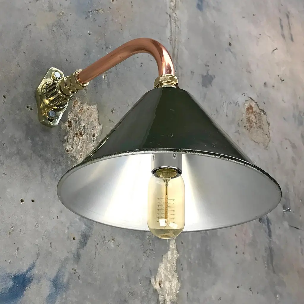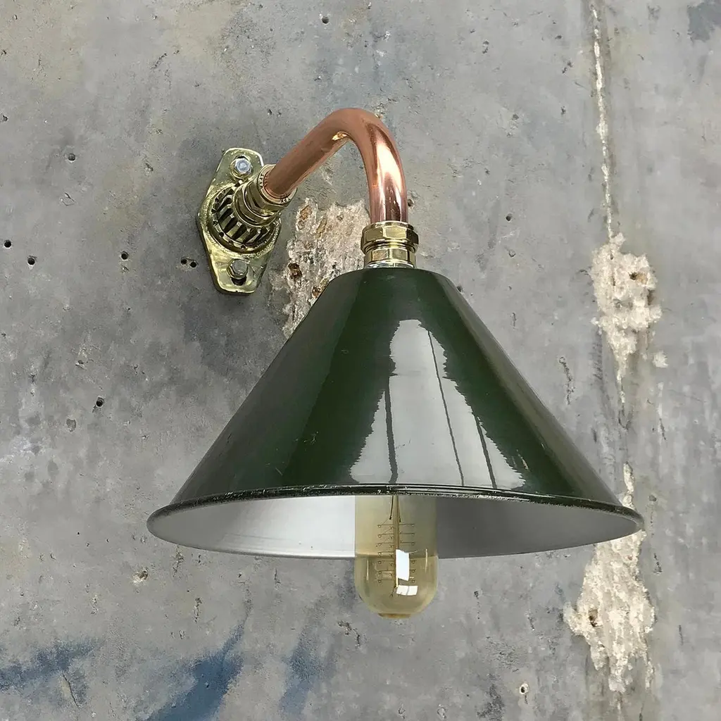 Ex British army festoon lamp shade fitted to a copper and brass cantilever fitting.At Loomlight we have fabricated a copper and brass cantilever wall mount and we can offer customised dimensions for the reach of the lamp from the wall, we can also finish the shade in your choice of color.This great for lighting pictures on the wall or lighting workbenches or desks where functional lighting is required. They also work great as bedside lamps.Dimensions:Width of shade - 23cmReach from wall - 38cmBulb - E26 / E27 100v - 220v.
