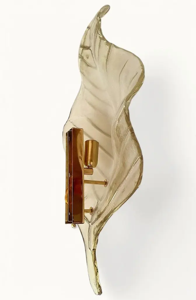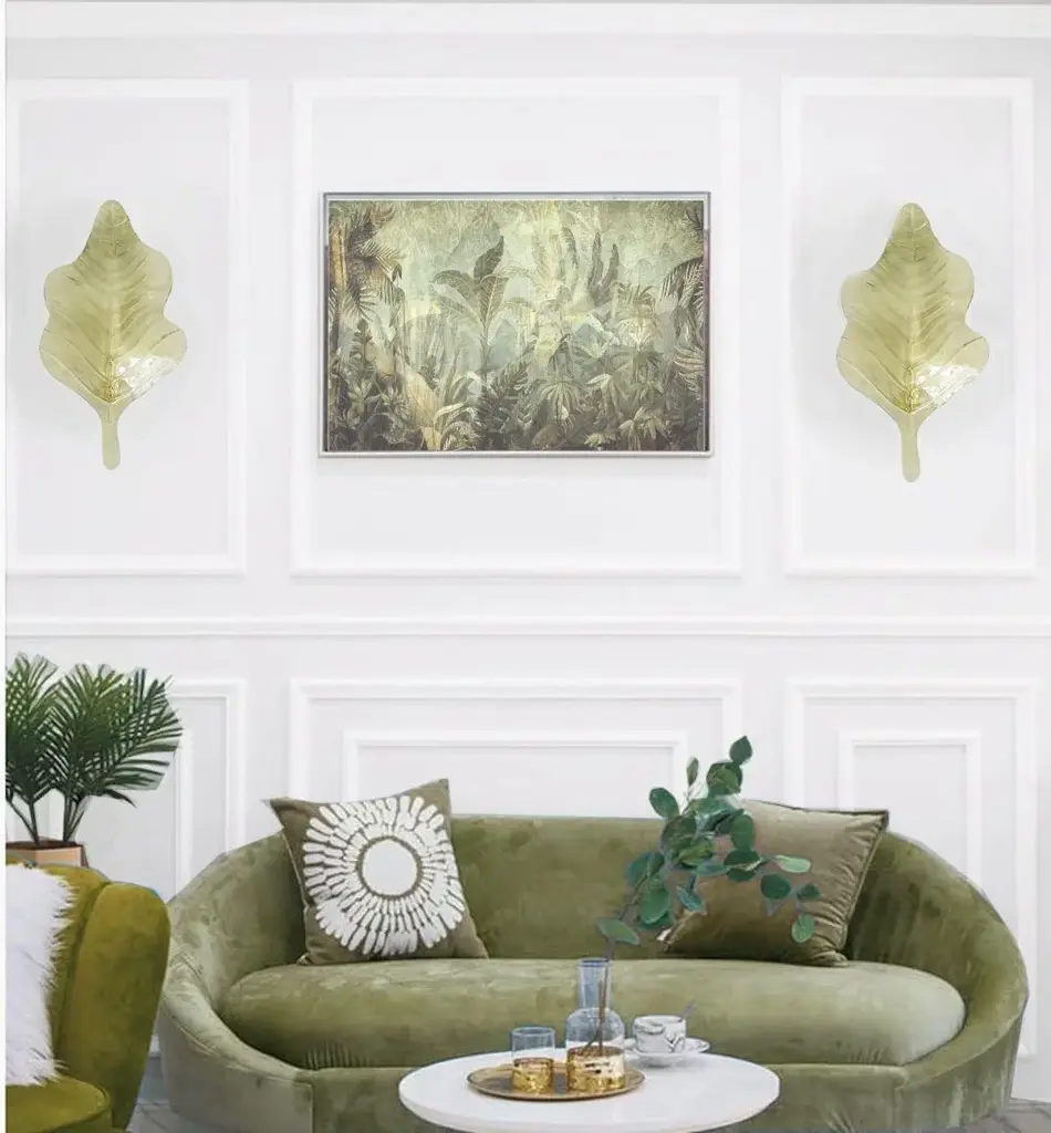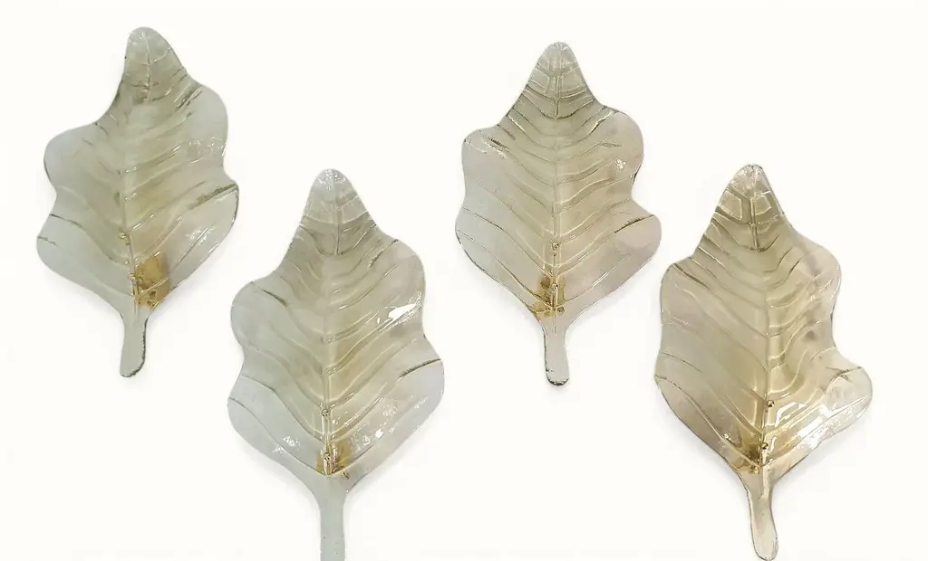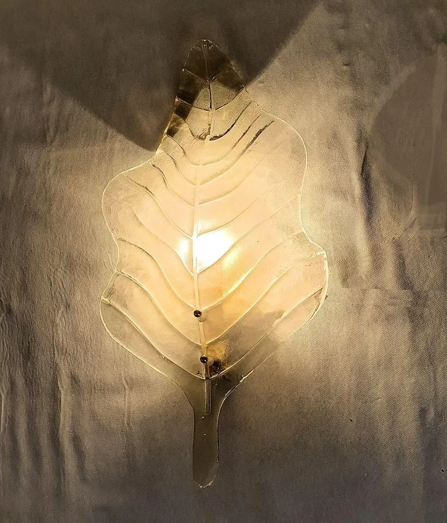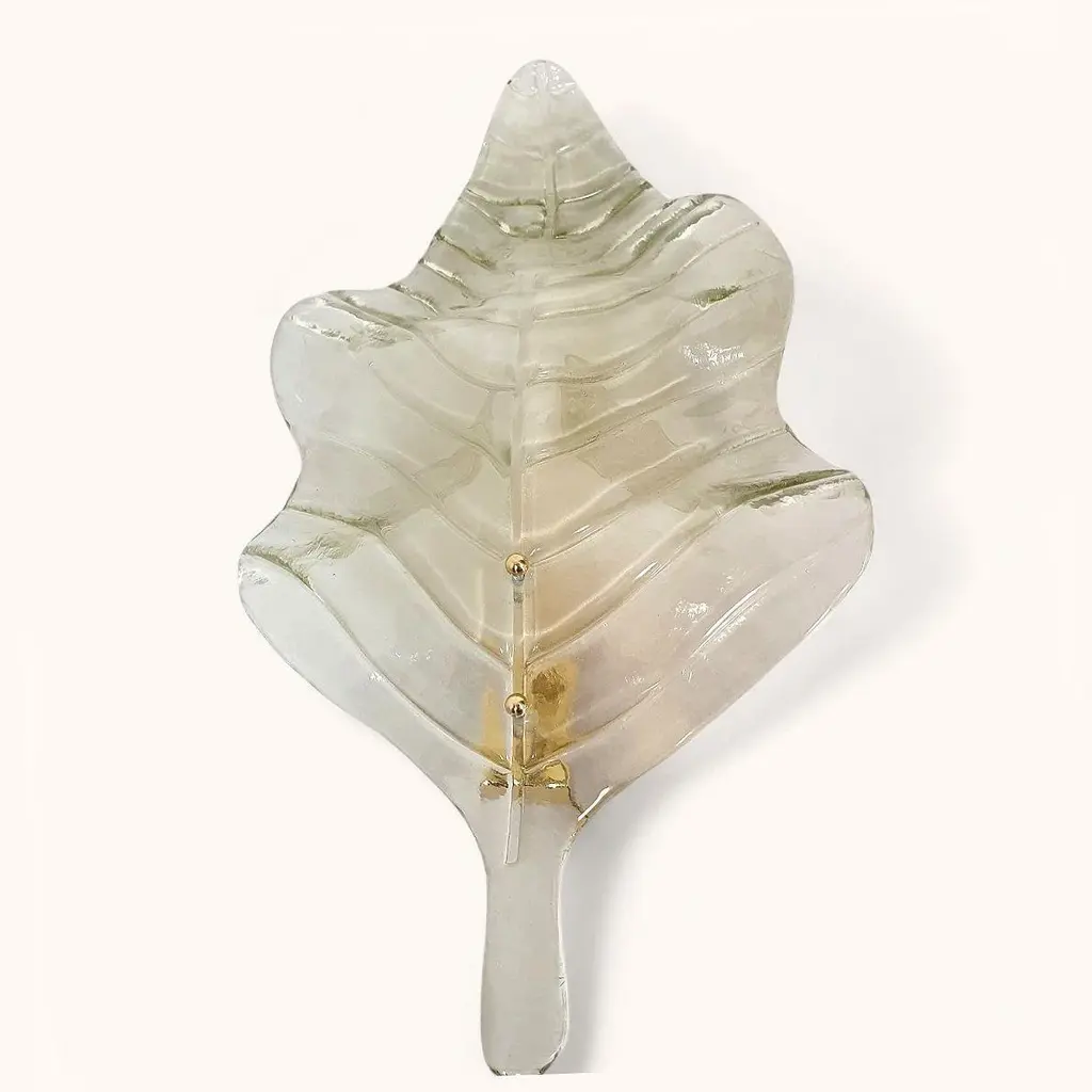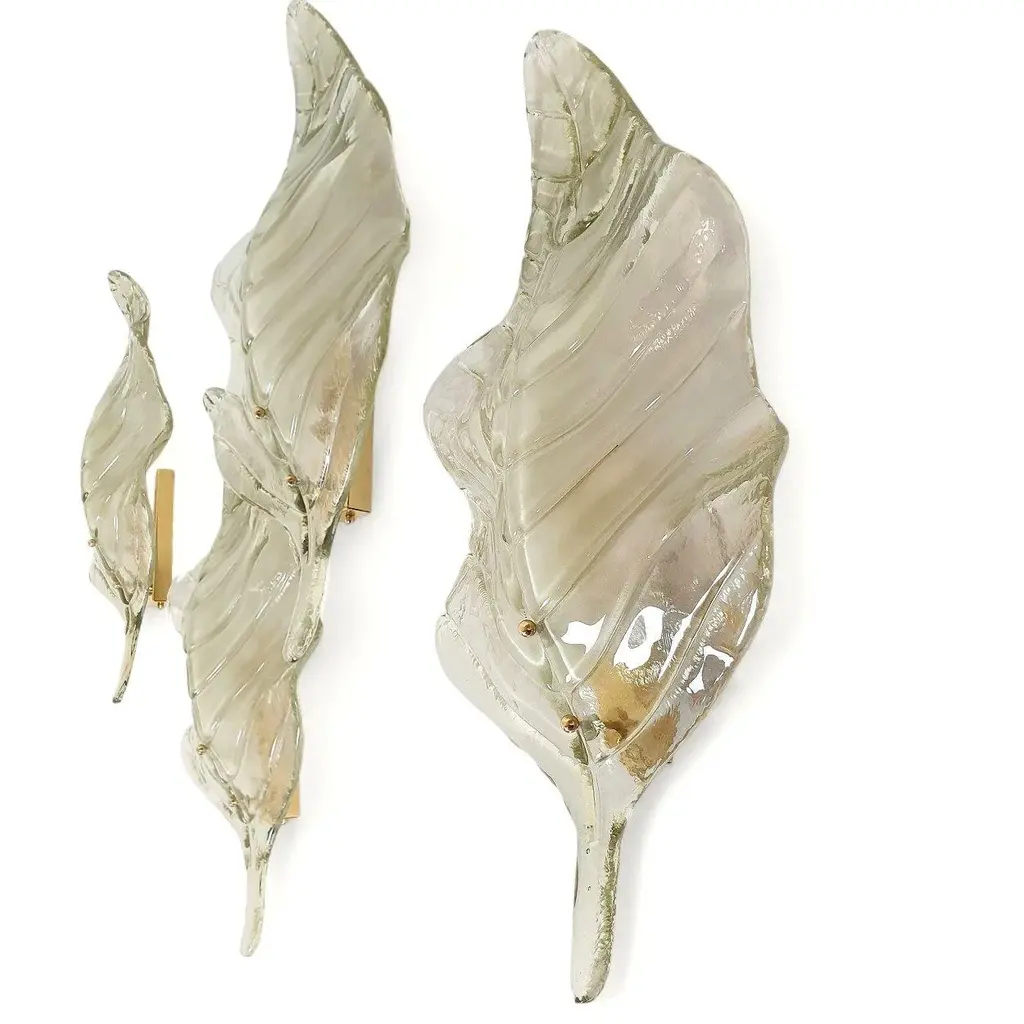 1980s Large Green Murano Style Glass Leaf Sconces - A Pair