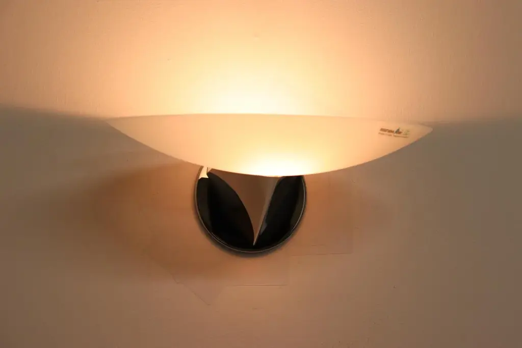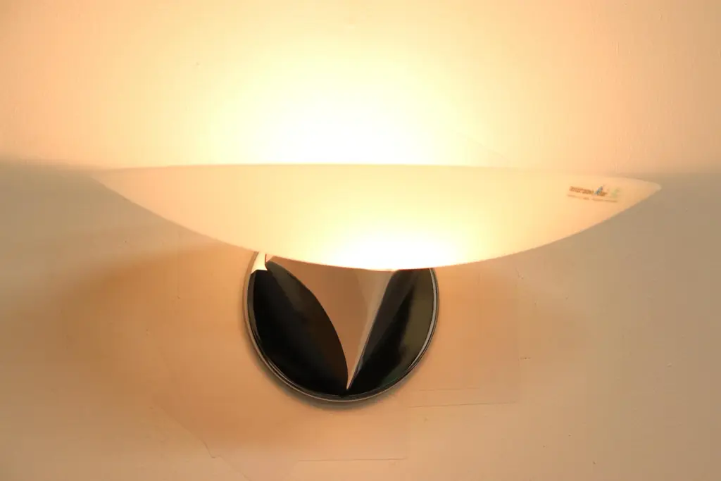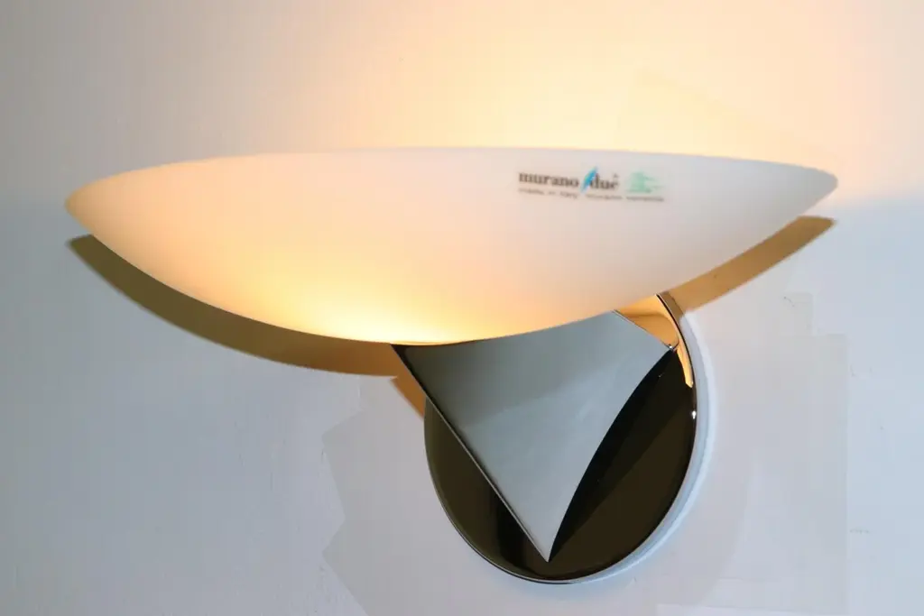 1990s Wall Lamp "Chimera Piccola" Wall Lamp Murano White Glass Diffuser, Chrome Mounting. Designed By Carlo Nason For Murano Due. Dimensions: Width 13 3/4" - Depth 7" - Height 5" Wattage: 75W Max. Q75FR/DC 120V Halogen Bulb
