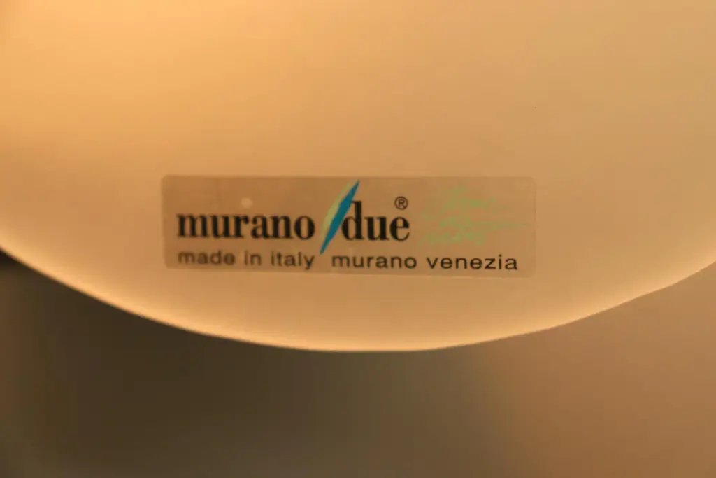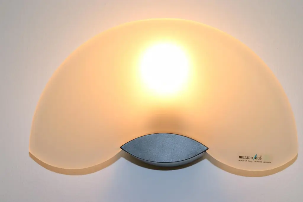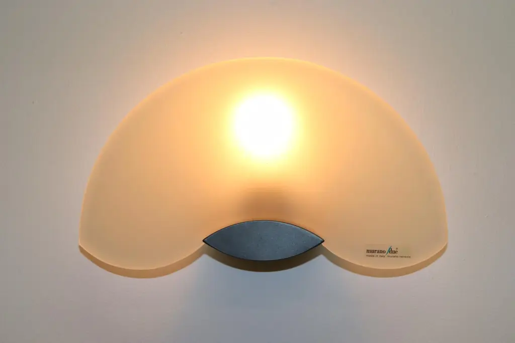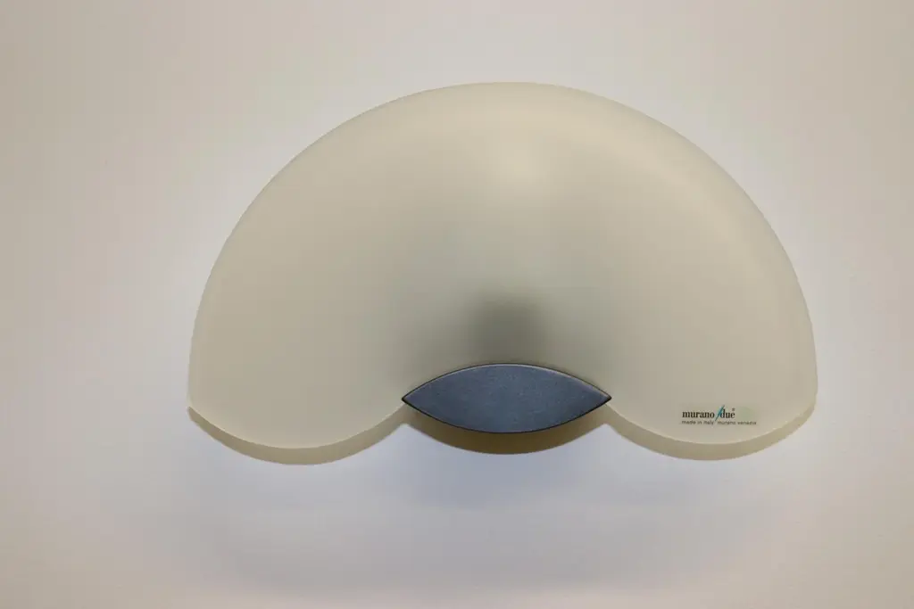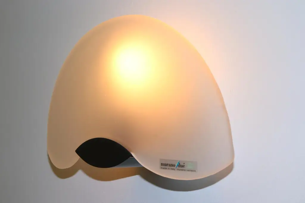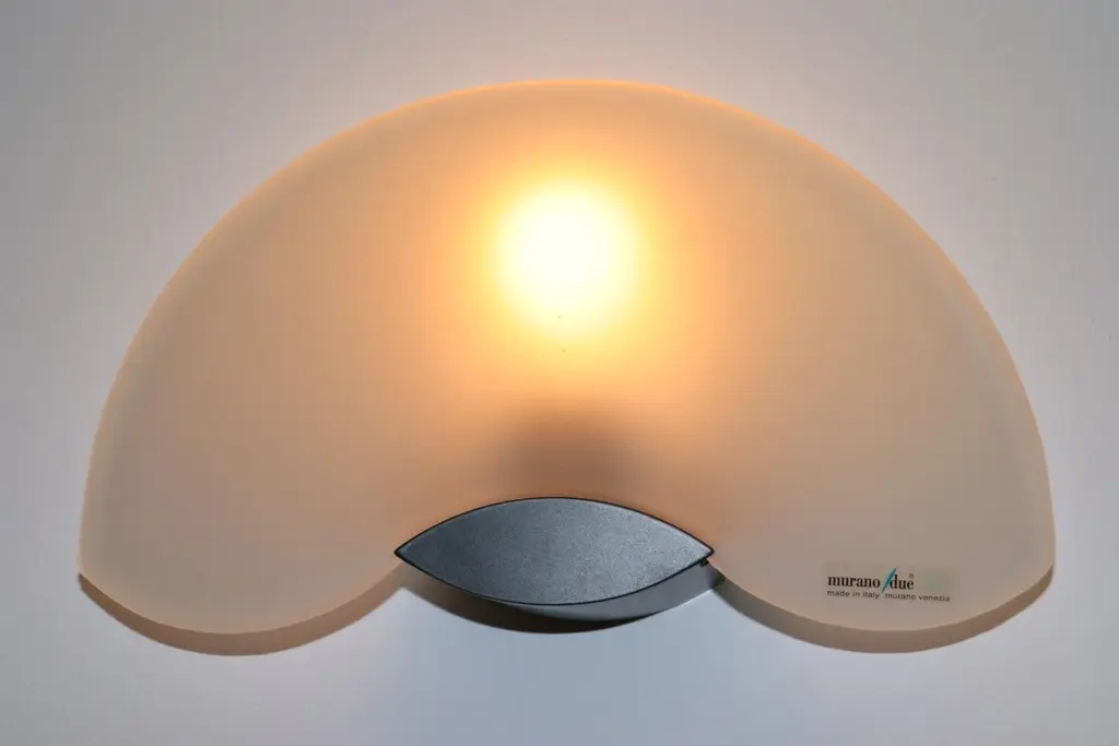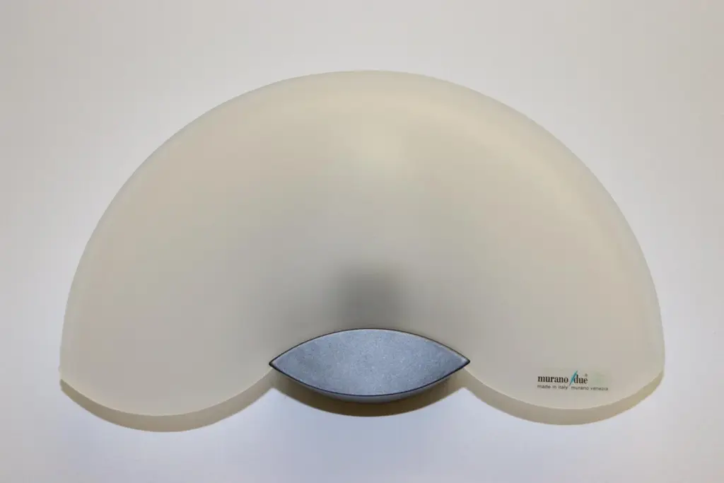 1990s Wall Lamp Murano Hand Cast and Shaped " Frosted White " Glass Diffuser. "Venusa" was designed by Federico Codato for Murano Due. Mounting: gunmetal powder-coated enamelled metal. Dimensions: width 14.75" ; height 8"; depth 6" Wattage: 100 watt E26 Bulb