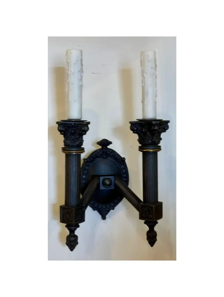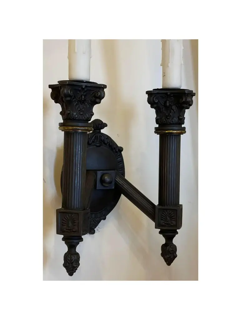 19th C, Style Empire Black Neoclassical Corinthian Column 2 Lite Wall Sconce
