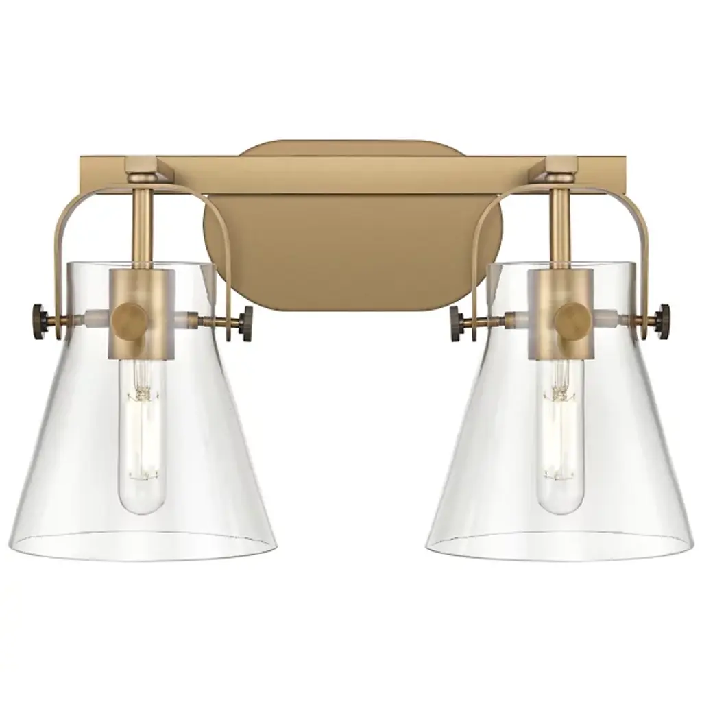 INNOVATIONS 423-2W-BB-G423-7SM Pilaster II Cylinder 2 15 inch Bath Vanity Light Brushed Brass. Style: Contemporary, Farmhouse, Restoration-Vintage. Collection Name: Downtown Urban. Metal Finish(Body): Brushed Brass. Material: Steel, Cast Brass, Glass. Dimension(in): 10.5(H) x 15(W) x 7.75(Ext). Bulb: (2)6W LED(Included). Voltage: 120. Dimmable: Yes. Color Temperature (Kelvin): 2700. Color Rendering Index (CRI): 90. Lumens: 750. Life Expectancy (Hours): 15000. Glass Shade Description: Light Smoke Pilaster II Cylinder. Glass Type: Smoked. Shade Shape: Cylinder. Glass or Metal Shade Color: Light Smoke. Shade Material: Glass. Shade Dimension(in): 3.875(W) x 7(H). ADA Compliant: No. California Proposition 65 Warning Required: Yes. UL/ETL Certification Type: Damp Location.