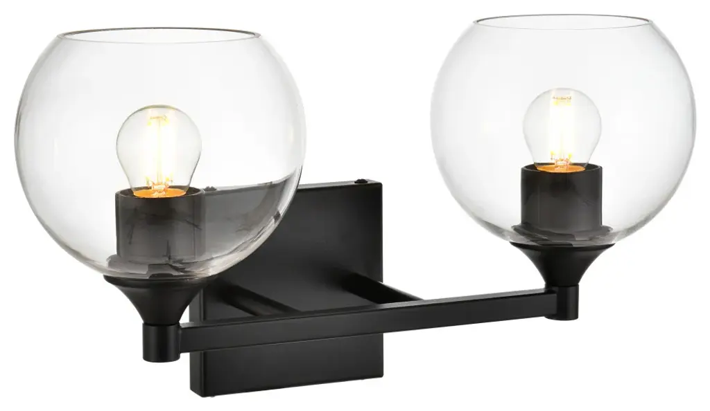 Defined by a sleek metal arm extends to suspend the clear pear-shaped glass shade. A contemporary stunner, it shows off the straight line details from the backplate and the streamline thick metal arm. Compatible with dimmers, so you''ll have the right amount of light in any given time of the day. Completely versatile, you can place this wall light as an uplight or downlight. Rated for use in damp locations, this will work perfectly over a vanity in your bathroom.illuminated by 2 E26 bulbs, light bulbs not includedcrafted with Iron and Glassbackplate measures 4.7 inches wide x 0.8 inches high x 4.7 inches deepcan be installed as an uplight or downlightdimmable, compatible with a dimmer switch (not provided)hardwired, professional installation recommendedclear glass shade filter light from the straight metal armed sconce