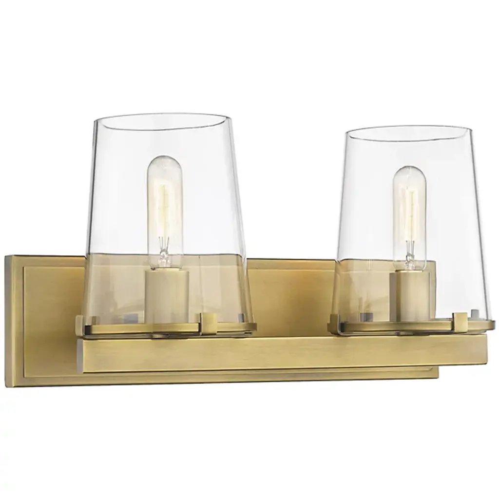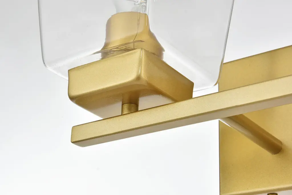 Defined by curved metal arm extends to suspend the clear bell glass shade. A contemporary stunner, it shows off the straight line details from the backplate and the streamline thin metal arm. Compatible with dimmers, so you''ll have the right amount of light in any given time of the day. Completely versatile, you can place this wall light as an uplight or downlight.illuminated by 2 E26 bulbs, light bulbs not includedcrafted with Iron and Glassbackplate measures 7.1 inches wide x 0.8 inches high x 4.7 inches deepcan be installed as an uplight or downlightdimmable, compatible with a dimmer switch (not provided)hardwired, professional installation recommendedclear glass shade filter light from the straight metal armed sconce