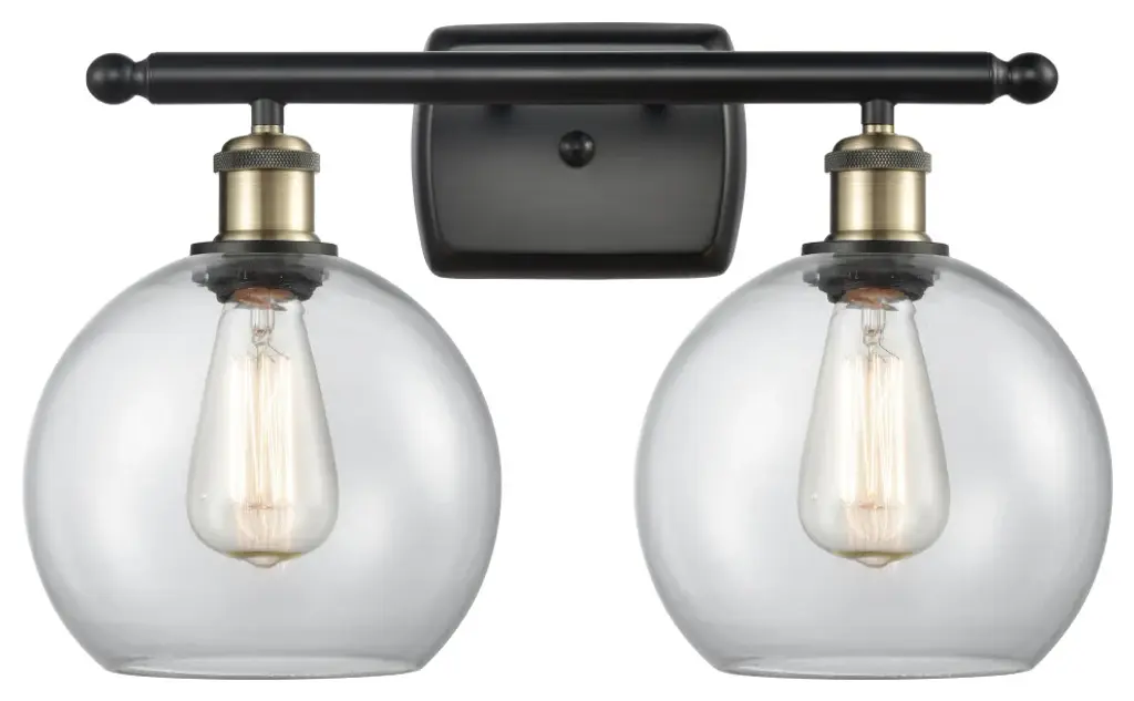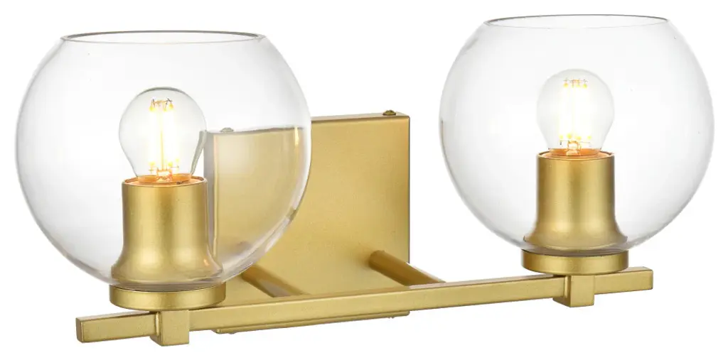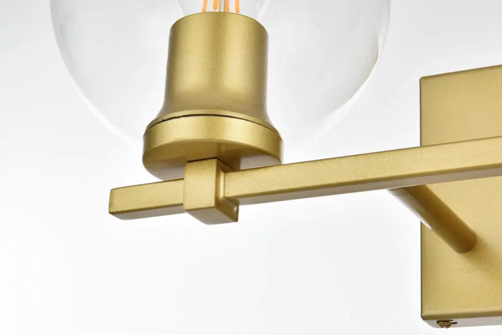 Defined by a sleek metal arm extends to suspend the clear bell glass shade. A contemporary stunner, it shows off the straight line details from the backplate and the streamline thin metal arm. Compatible with dimmers, so you''ll have the right amount of light in any given time of the day. Completely versatile, you can place this wall light as an uplight or downlight. Rated for use in damp locations, this will work perfectly over a vanity in your bathroom.illuminated by 2 E26 bulbs, light bulbs not includedcrafted with Iron and Glassbackplate measures 4.7 inches wide x 0.8 inches high x 4.7 inches deepcan be installed as an uplight or downlightdimmable, compatible with a dimmer switch (not provided)hardwired, professional installation recommendedclear glass shade filter light from the straight metal armed sconce