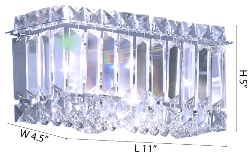 This elegant wall sconce features a modern design with a chrome metal frame and crystal accents. The minimalist design creates a sparkling and eye-catching effect, perfect for adding a touch of glamour to a hallway, bathroom, or bedroom.Finish: ChromeMaterial: Metal & CrystalNumber Of Bulbs: 2Bulb Type: E12Bulbs Included: NoWattage: 60WCUL/CSA/UL Listed