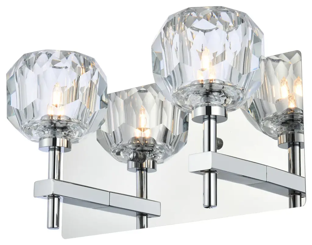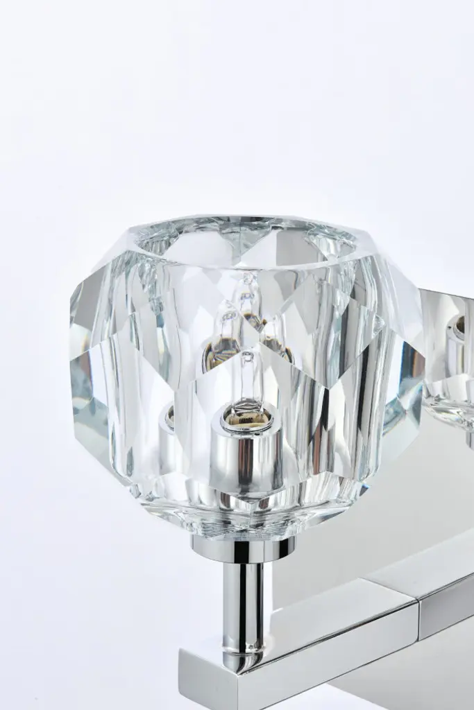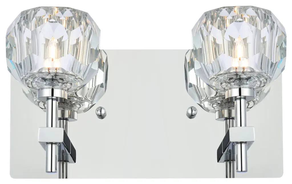 Crafted from iron metal and crystal, it features a rectangular backplate and two arms extended with solid K9 crystal ball from the rod on either side for a modern and linear look. Each 20W G9 bulb ( not included) is diffused by a faceted clear crystal ball giving the fixture a touch of industrial and glam inspiration. This work of art will add an artful focal point to your entryway, dining room, kitchen, or office. Evoking a sophisticated and timeless aesthetic to any space and will be an instant conversation started with its finely faceted crystal sphere which is polished by hand to reflect and refract light. Available in three different finishes in gold, chrome, and black.crafted with iron metal and K9 clear faceted crystal ballHexagonal and pentagonal facets on the 4 inch crystal spheres tastefully diffuses the soft illumination from each armfixture can be mounted as an uplightrequires 2 G9 bulbs (bulbs are not provided)backplate measures 11 inches wide x 5 inches high x 1 inches deepWorks best in hallways, closets, bedrooms, office, or any dry room of your choice. dimmable, compatible with a dimmer switch (not provided)