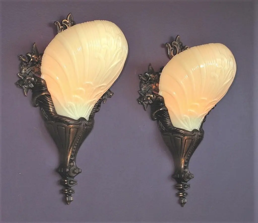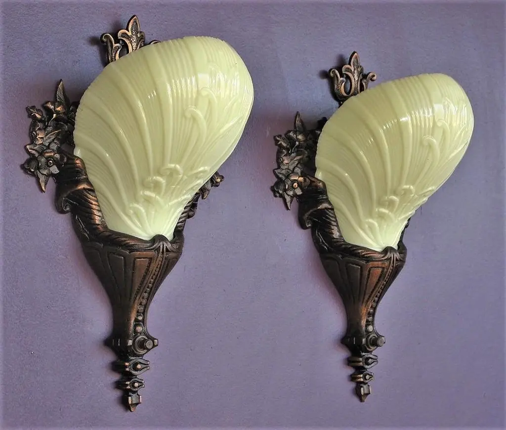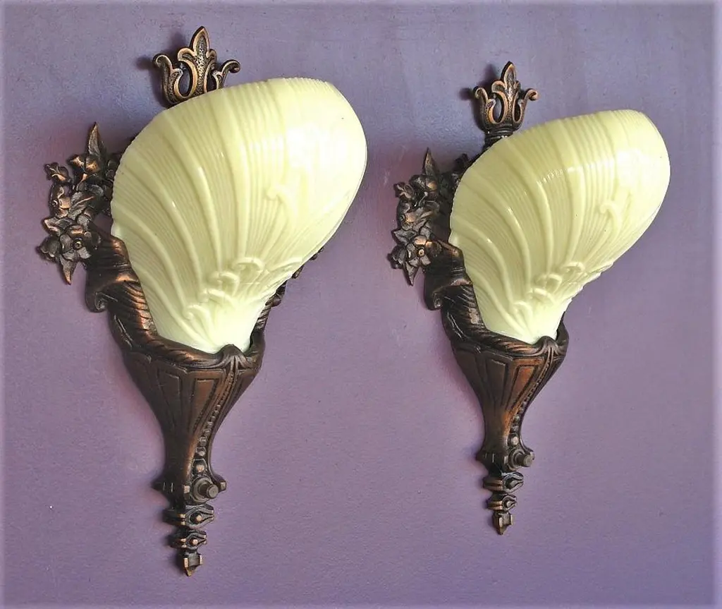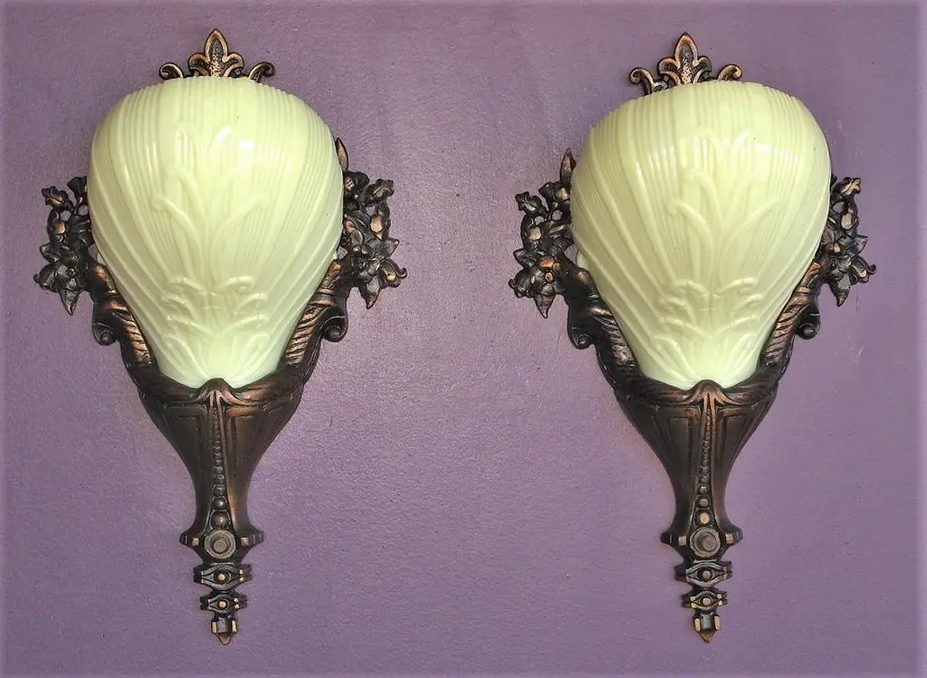 2 Pair Custard Slip Shades On Bronze Deco Rococo Vintage Originals Priced Per Pr