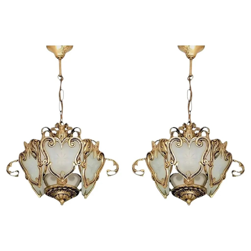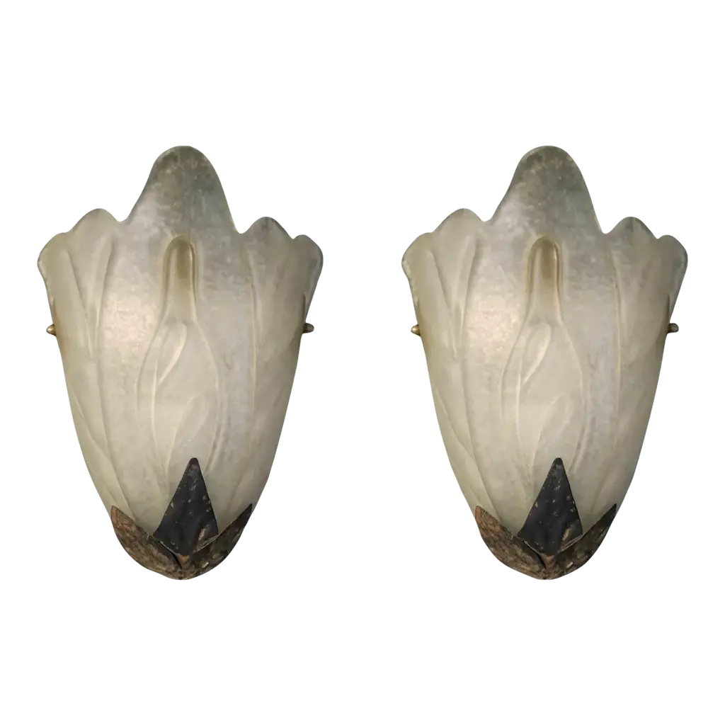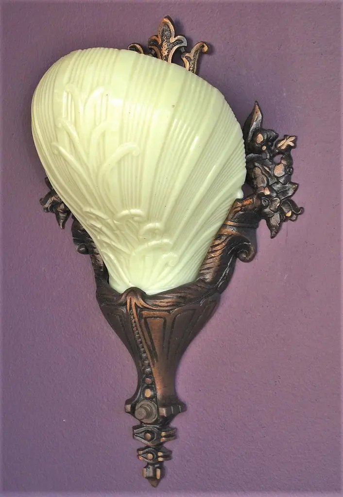 2 Pair Custard Slip Shades On Bronze Deco Rococo Vintage Originals Priced Per Pr