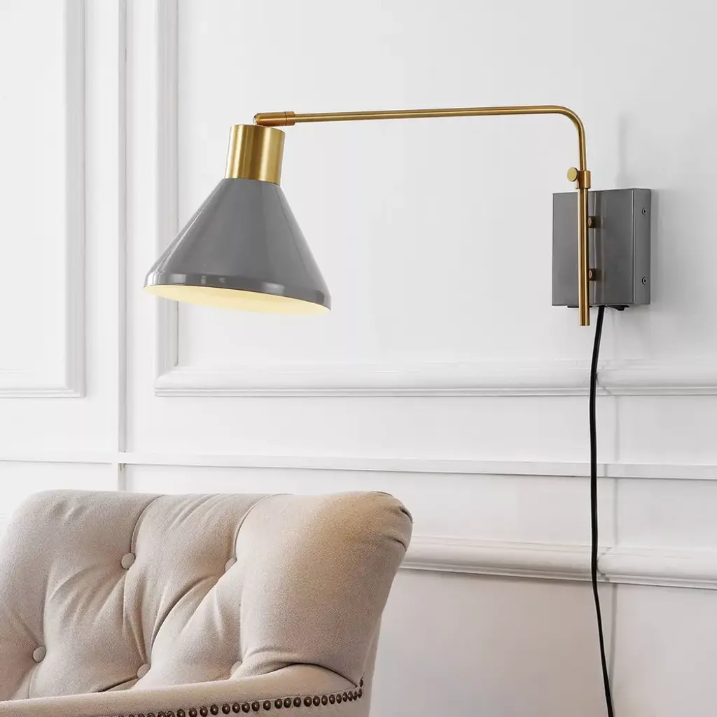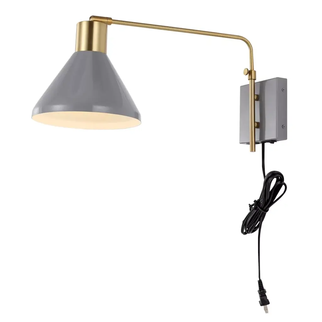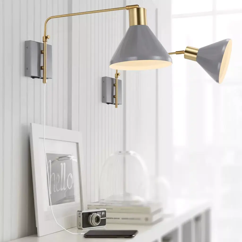 20.5" Led 1-light Max Swing Arm Mid-century Iron Usb Charging Port Wall Sconce Gray/brass - Jonathan Y: Adjustable, Plug-in Fixture