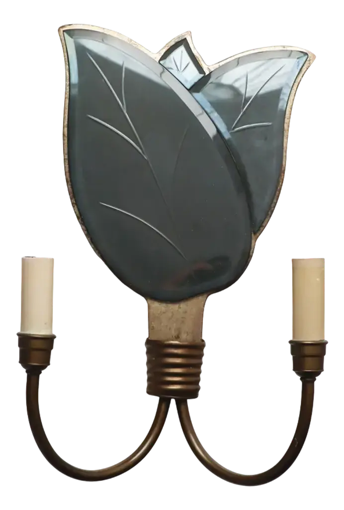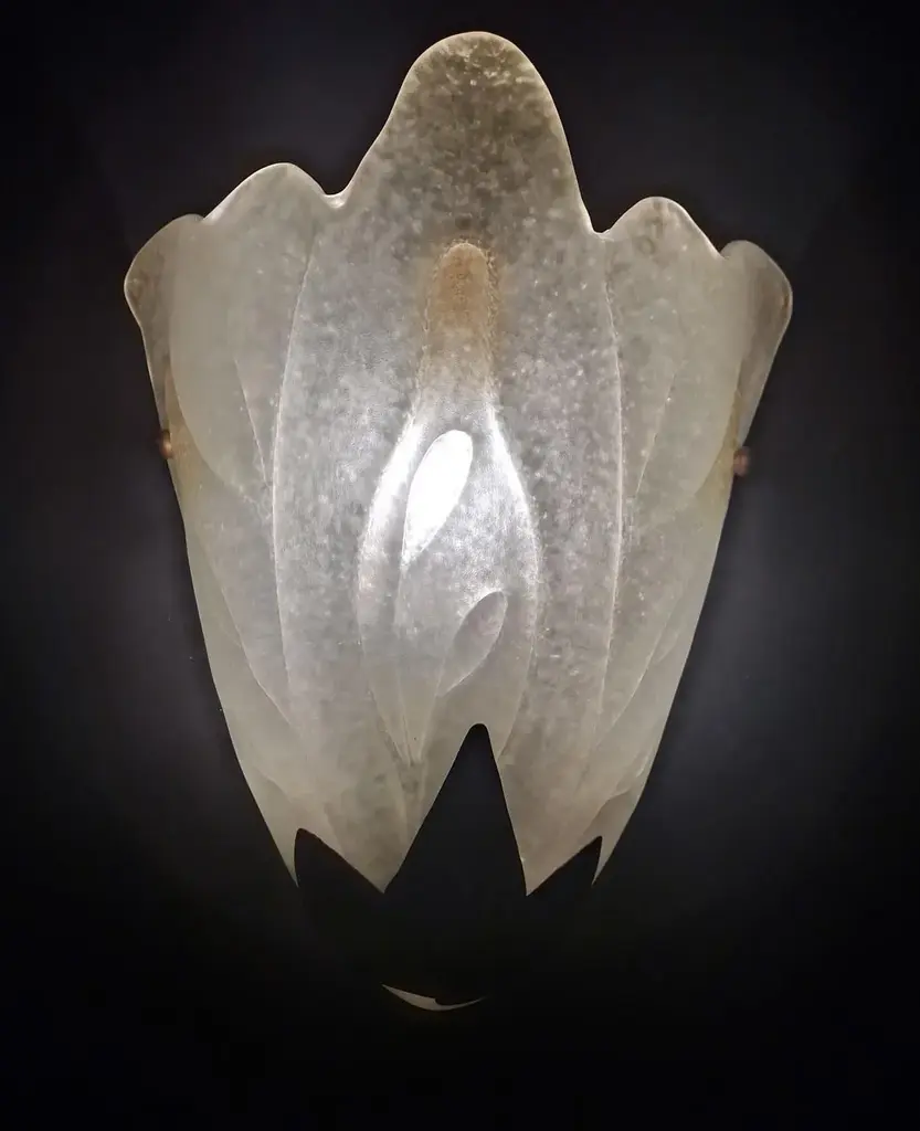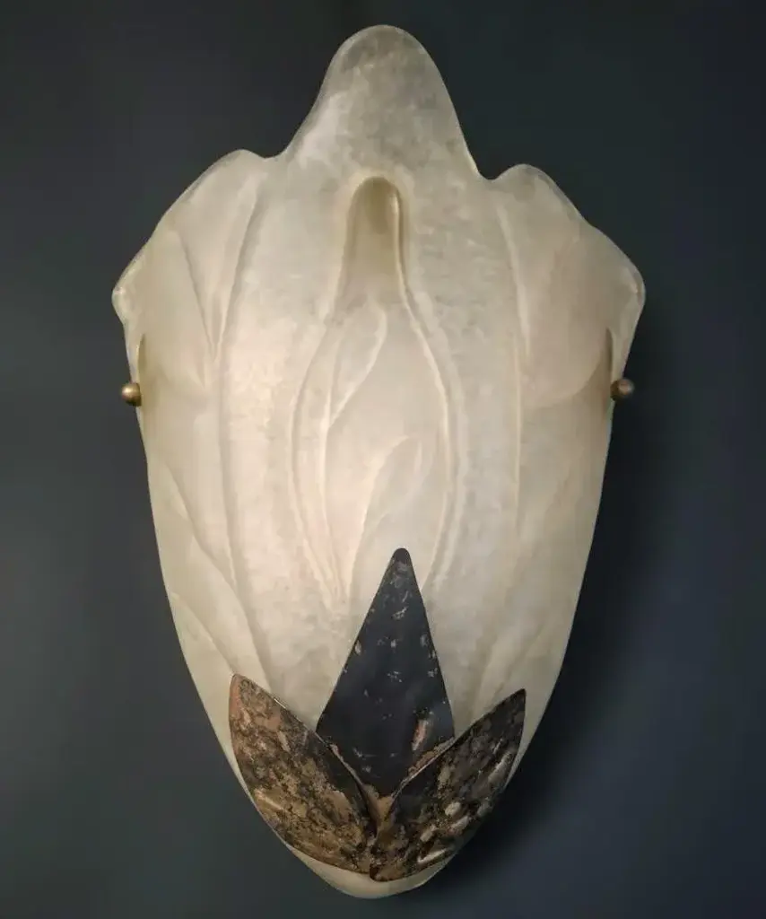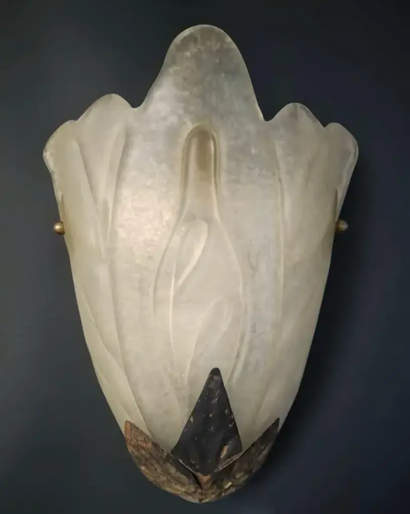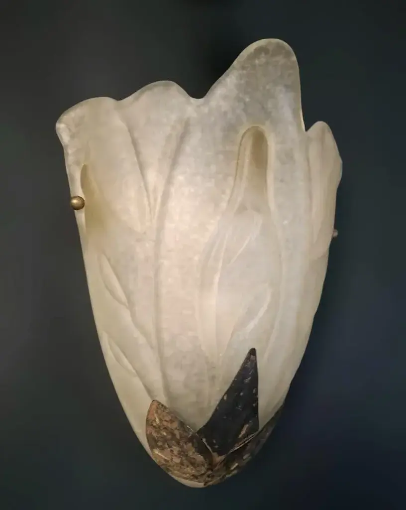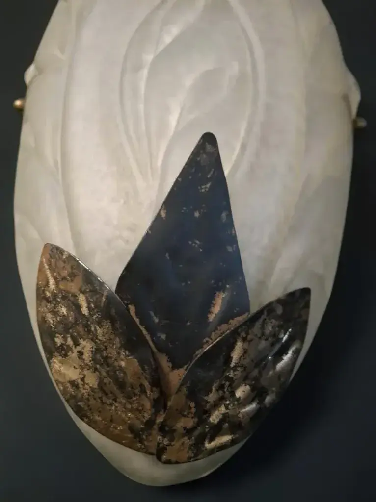 Vintage Italian Art Deco wall light with frosted white glass shield and metal leaves / Made in Italy in 20th century 1 light / E26 or E27 type / max 60W