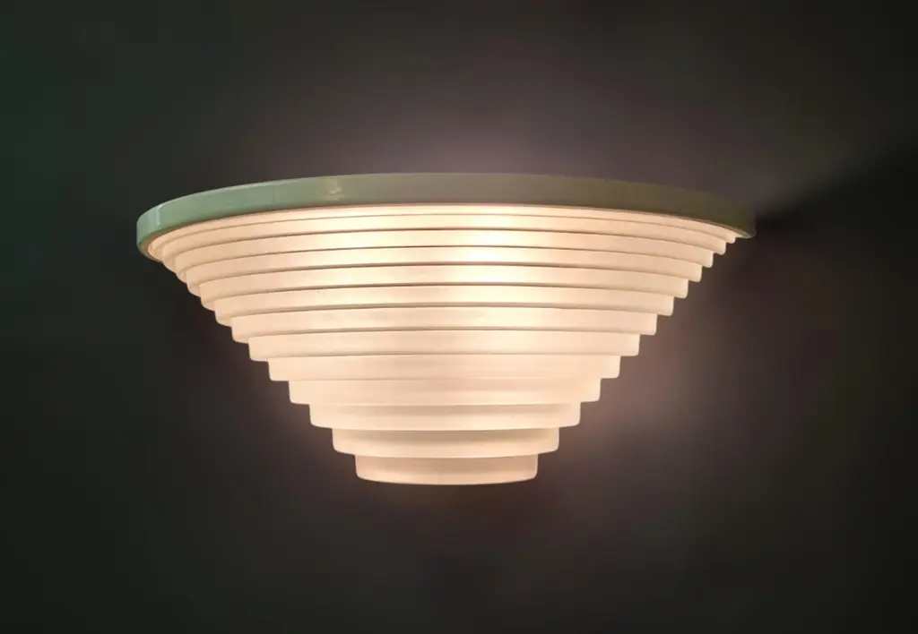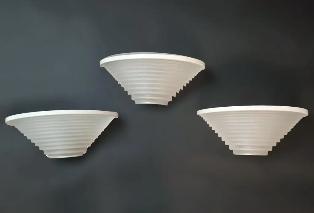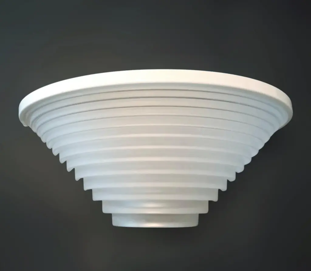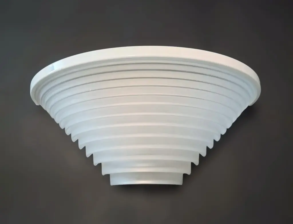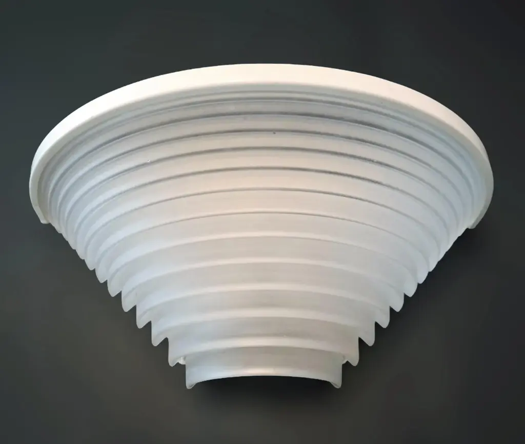 Italian vintage wall lights with white sanded glass shade on painted metal frame / Designed by Angelo Mangiarotti for Artemide, circa 1980s, made in Italy 2 lights / E26 or E27 type / Max 100W each
