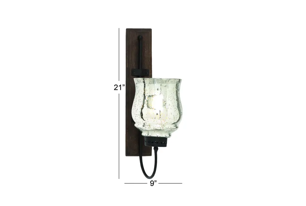 21" Brown Silver Mango Wood Rectangle Wall Sconce