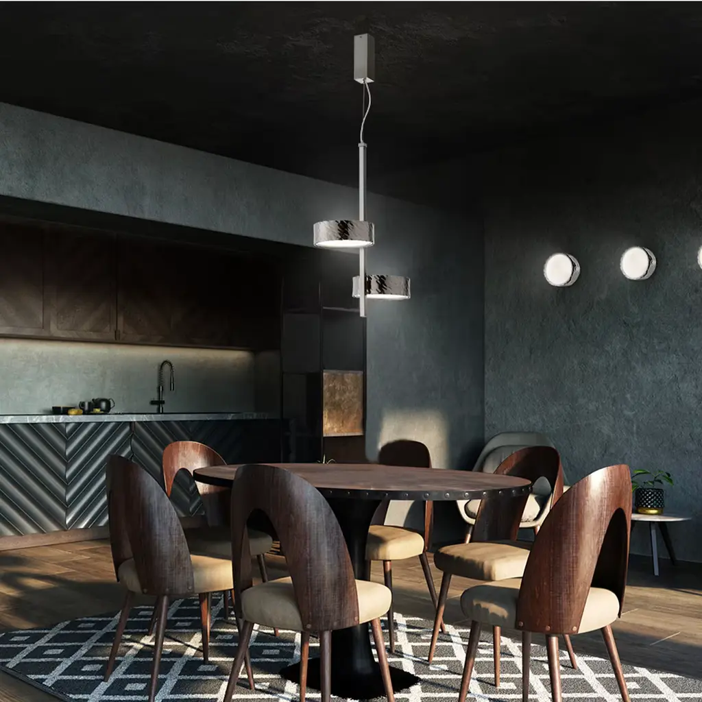 This collection resembles a beautifully balanced design with strong know-how that grew up in the years. Hammered by the hands of experienced craftsmen. Designed to be a breathtaking and glitzy highlight to an interior design project, it combines modern simplicity with an elegant and luxurious twist. The US version features an additional round plate in the same finish as the rest of the structure with a diameter of 12 cm (4.72'') in order to cover the j-box.
