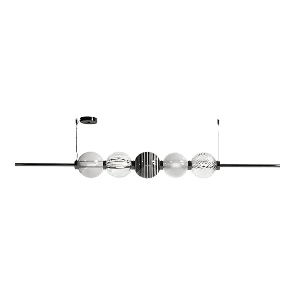Calculations, numbers, man’s endless attempt to rationalize an otherwise intuitive world. All this enclosed in a unique work by Monica Guggisberg and Philip Baldwin. Crafted with spheres of light, it is the utmost expression of beauty. Abaco is available as a pendant light, a wall light and a ceiling light.Additional Information:Material: GlassColour: MulticolourLight Source: 5 x max 8W LED E14Finishes: Brushed nickel metalDimensions: W 176 cmAvailable in other color options: Crystal/grey/milk-whiteAvailable in other size option: 3 Sphere
