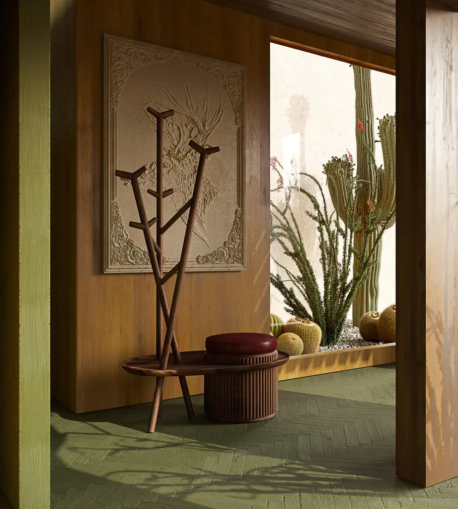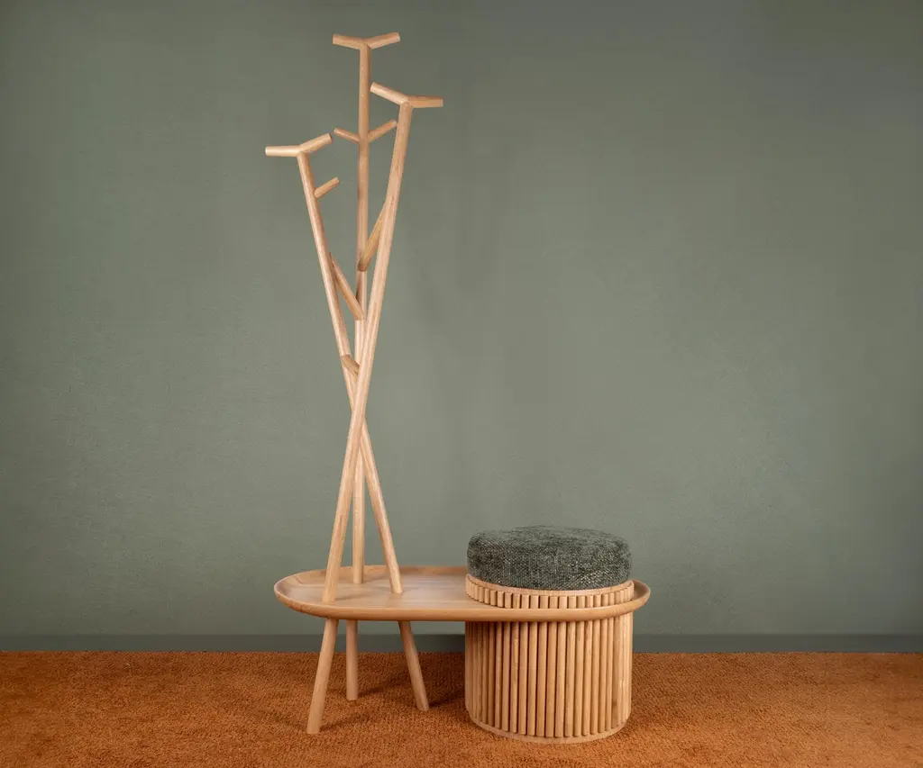 Supervised by John Ambrose Fleming, the inspiration for Wood Tailors’ Fleming wall lamp, Harold Everard Monteagle Barlow was an electrical engineer best known for his career as a teacher. At the University College London, Barlow provided a remarkable teaching method that got the students' attention from all-over the world.Honoring the incredible mind that mirrored Ambrose Fleming’s brilliance, Wood Tailors Club designers conceived the Barlow coat hunger. Strikingly handcrafted in walnut wood finished with matte varnish, the Barlow Coat Hanger features a genuine leather-upholstered stool allowing the aesthetic to function.The stunning Barlow coat hanger is proper of a hallway, bedroom, or even living room, giving personality to any environment you use it in.