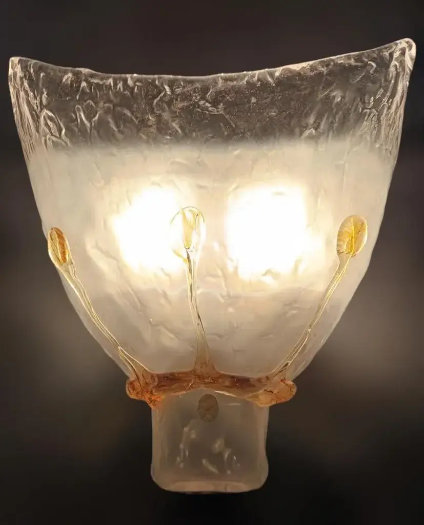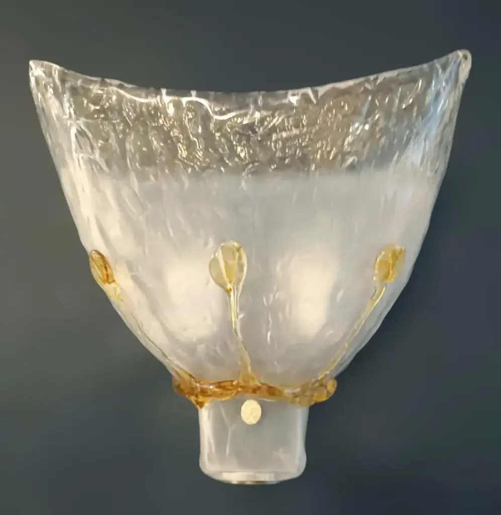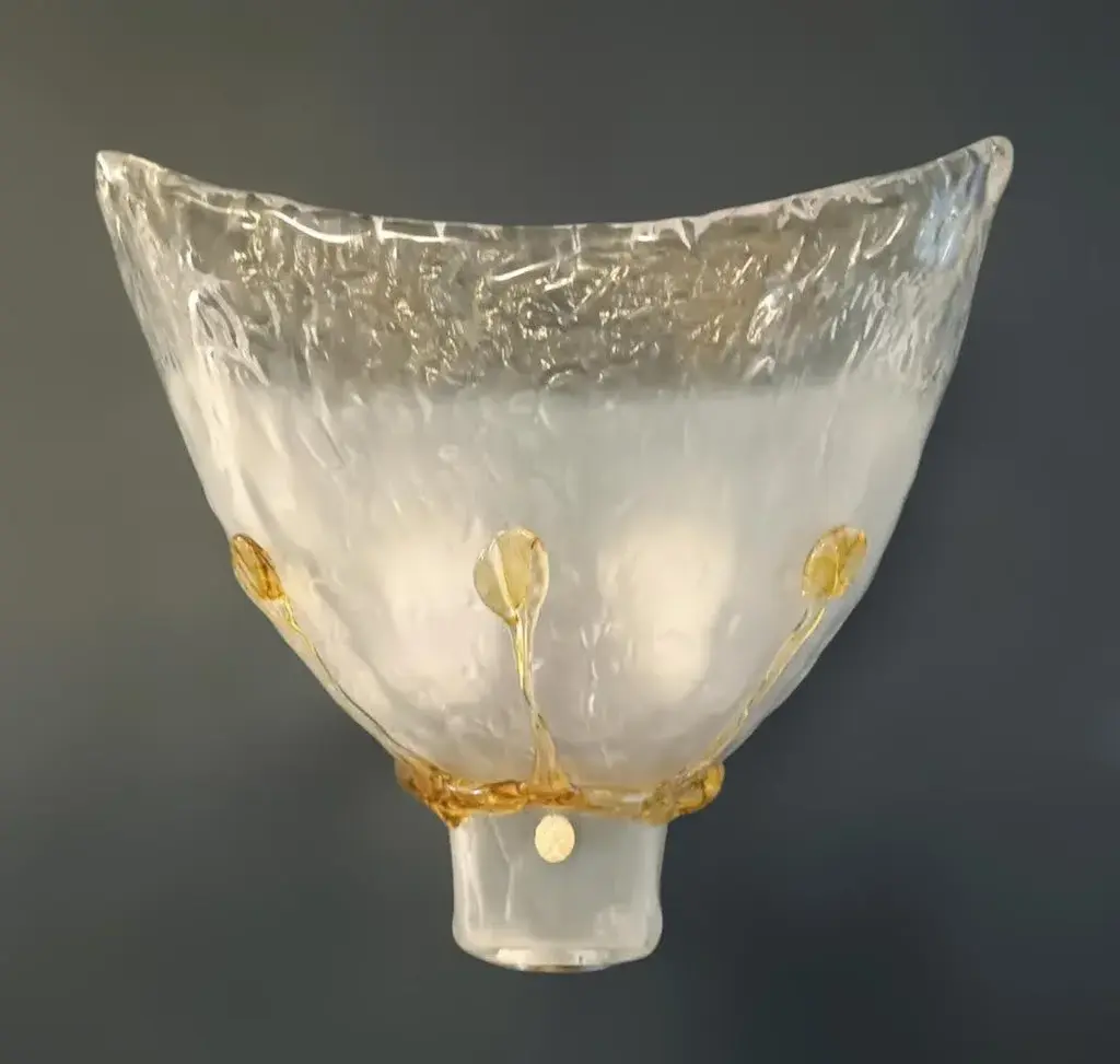 Italian wall light with frosted Murano glass shade decorated with amber details mounted on black metal structure / Made in Italy by Lampe, early 21st Century 2 lights / E26 or E27 type / max 60W each
