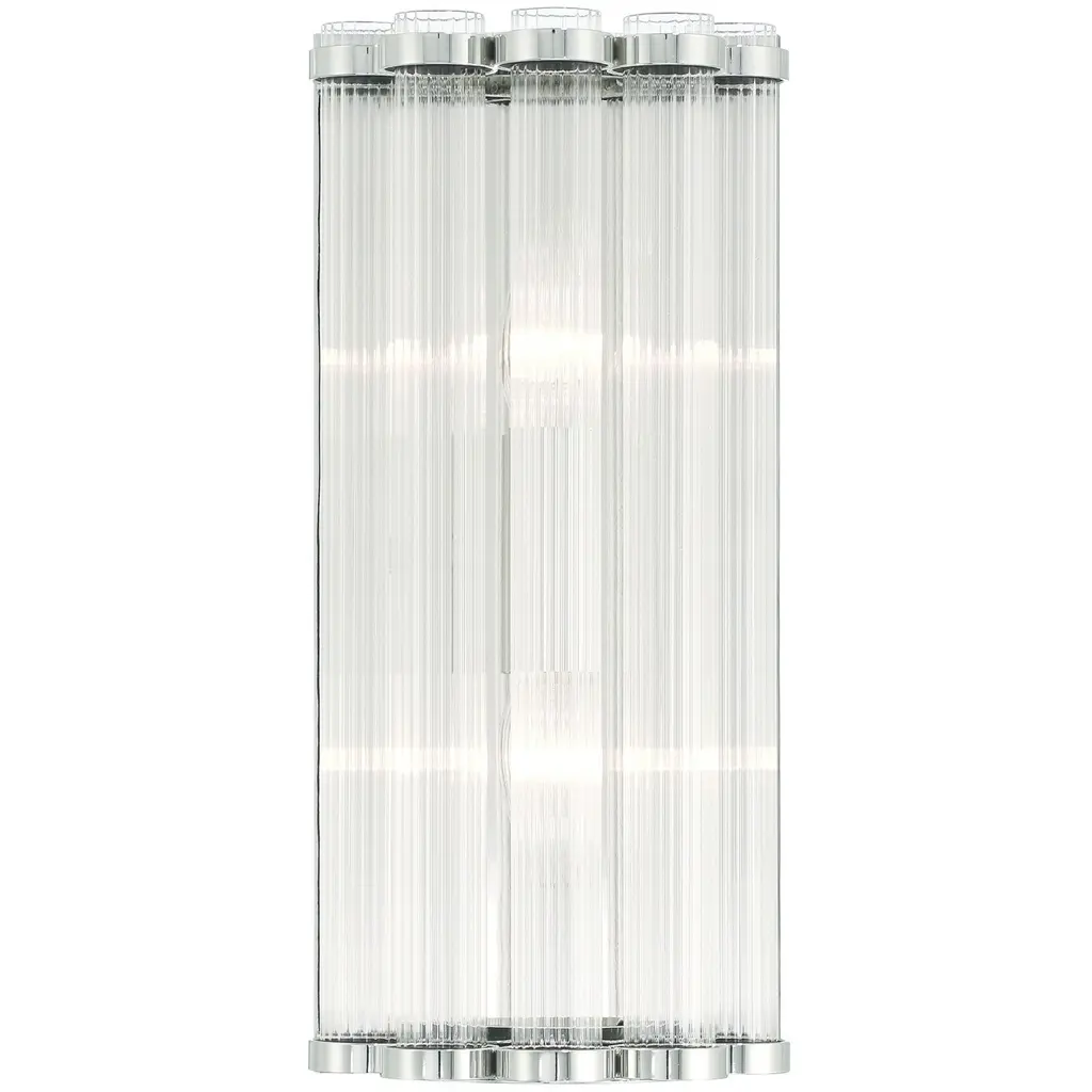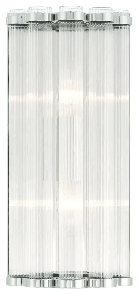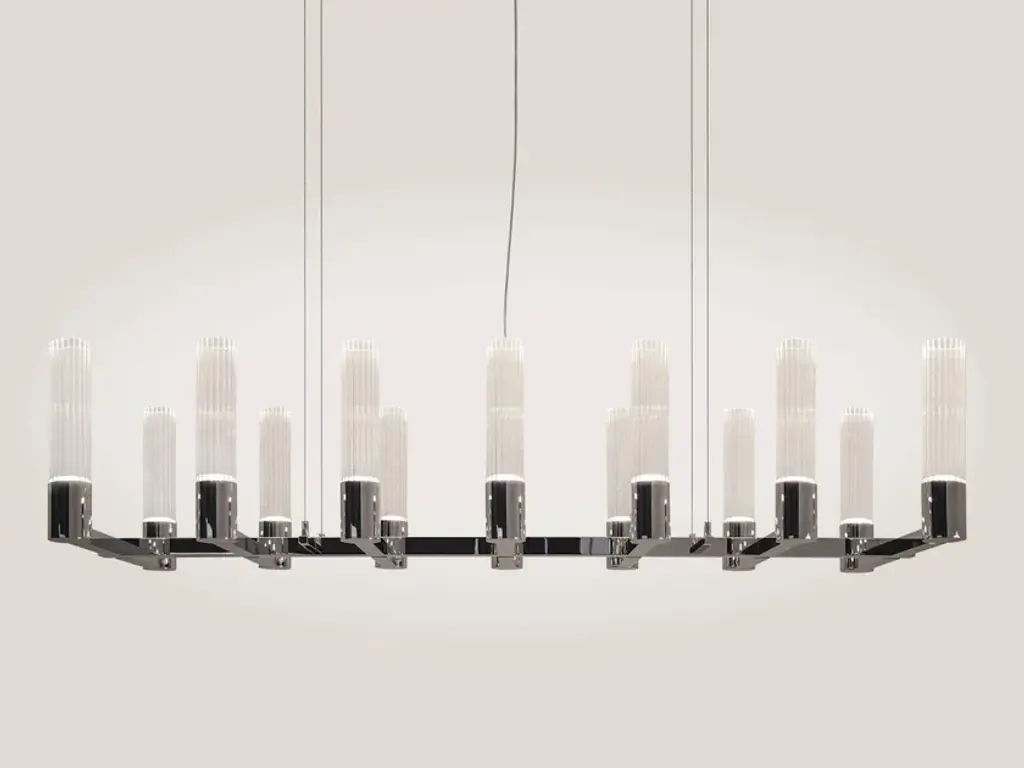 Nastri is an orderly arranged path of glass that gives meaning to its own complexity. Regardless of its size, small or large, the structure is monumental in appearance, just as the light it sheds: majestic. Nastri is available as a pendant light, a wall light and a table lamp.Additional Information:Material: GlassColour: CrystalLight Source: 2 x max 8W LED E14Finishes: Chrome metalDimensions: W 21.5 x D 21.5 x H 35 cm