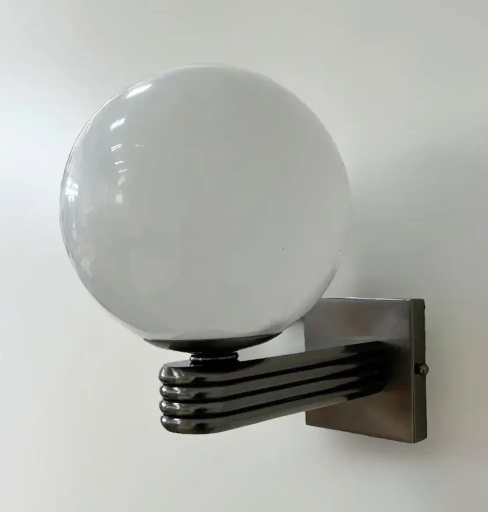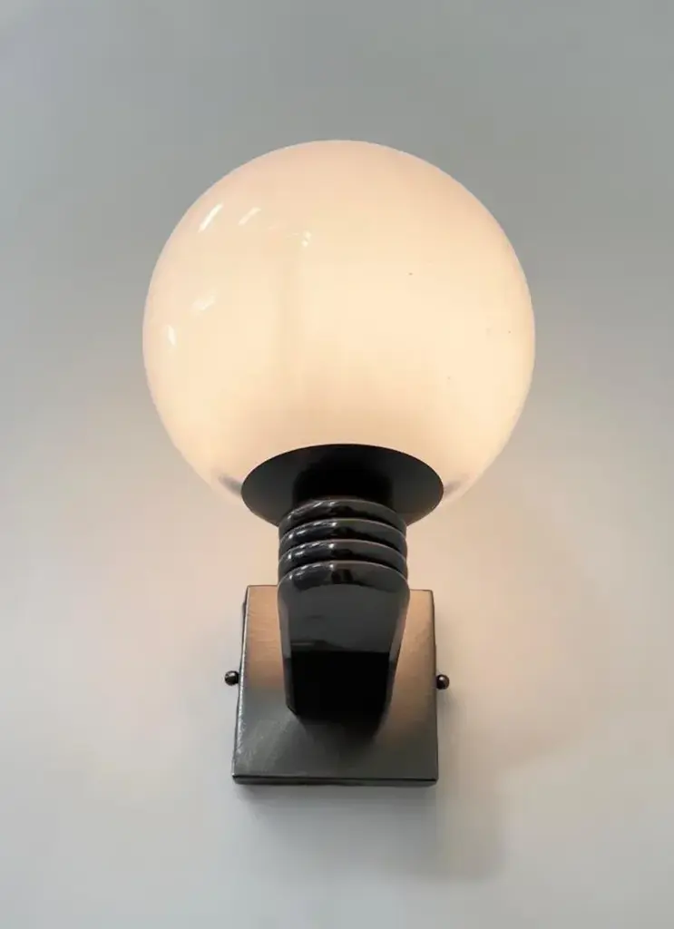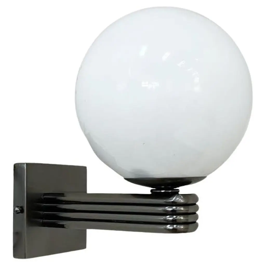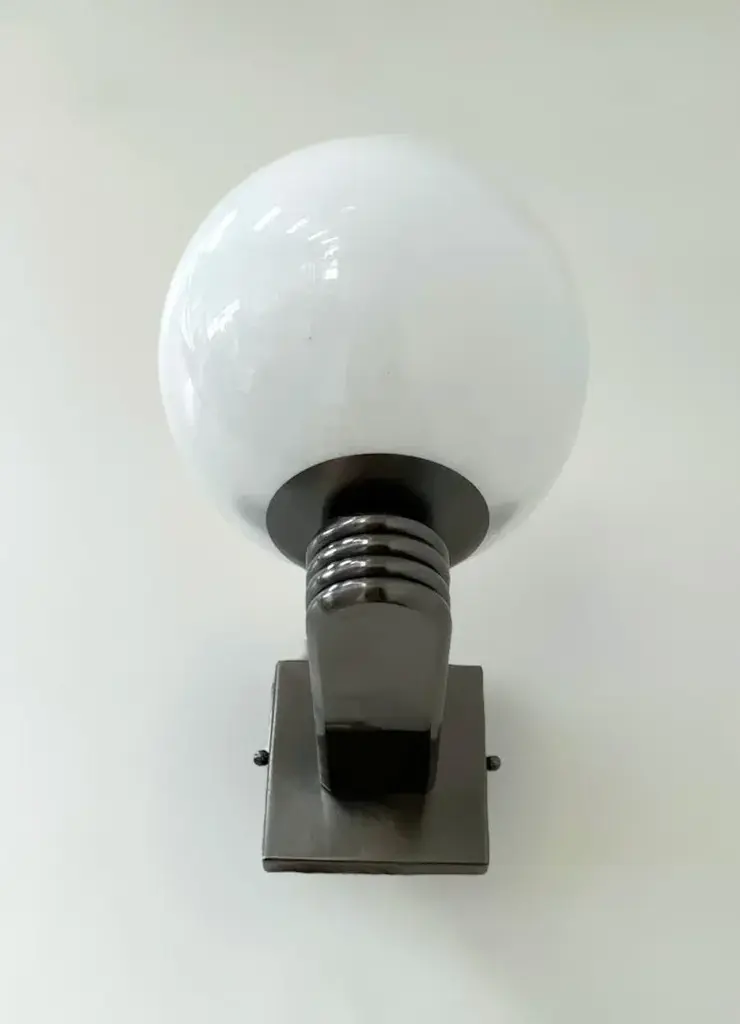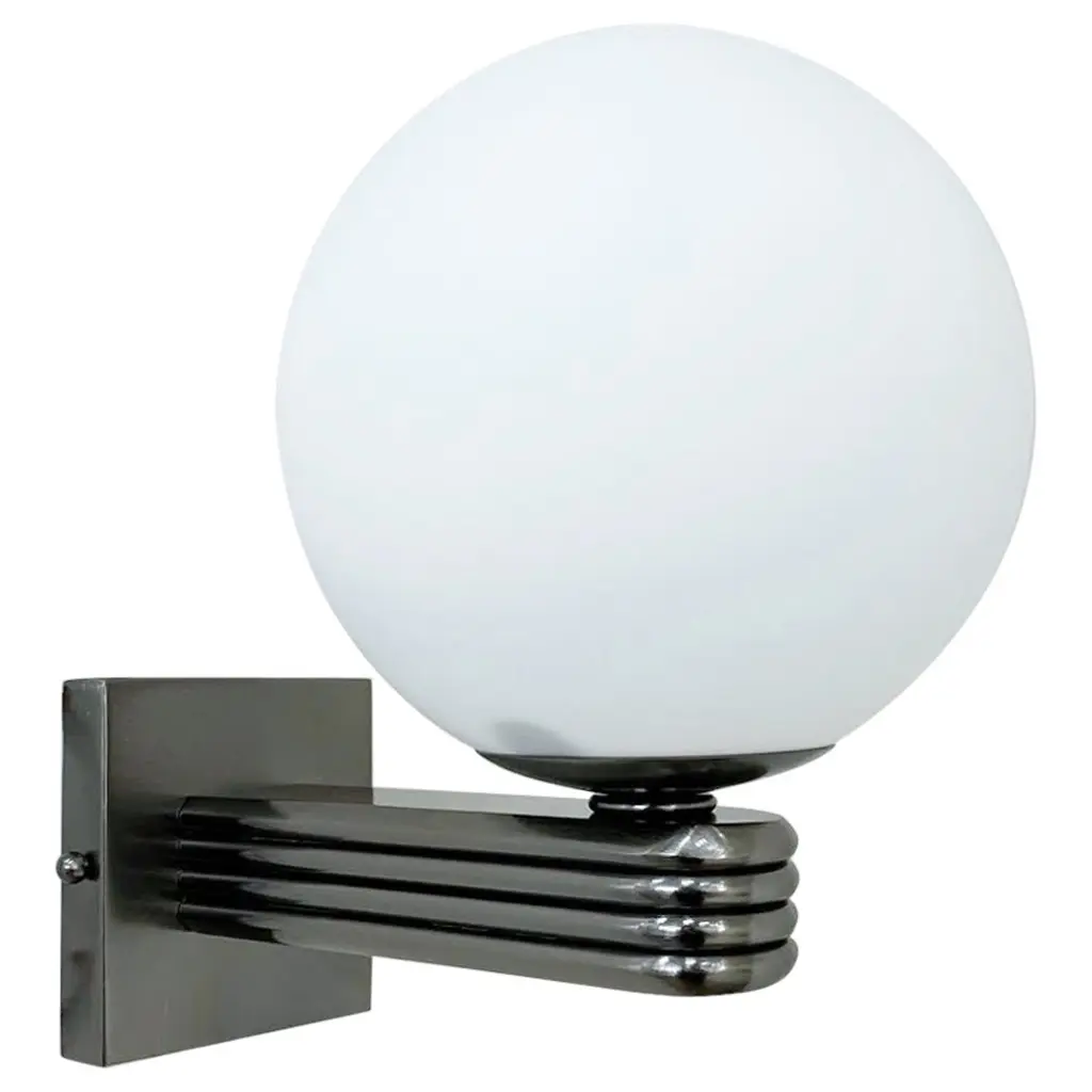 Italian Art Deco style wall light with Glossy White Murano glass globe mounted on Satin Black Nickel finish frame, designed by Fabio Bergomi for Fabio Ltd, made in Italy 1 light / E12 or E14 type / max 40W