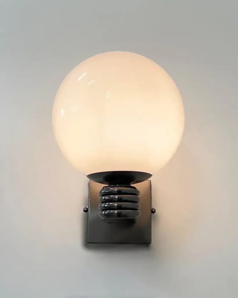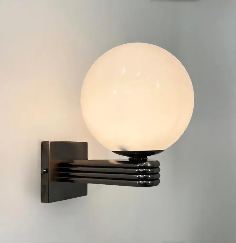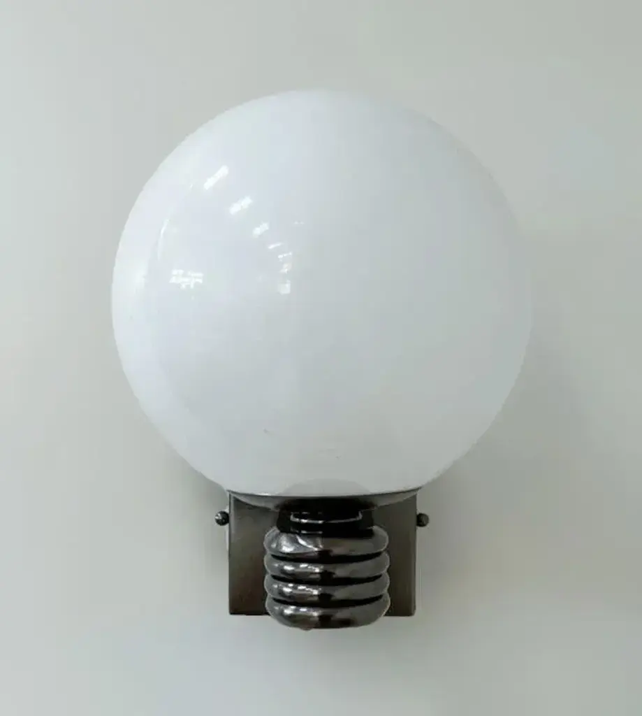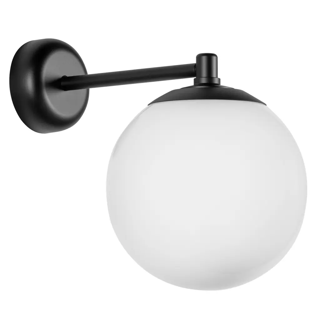 Italian Art Deco style wall light with Glossy White Murano glass globe mounted on Satin Black Nickel finish frame, designed by Fabio Bergomi for Fabio Ltd, made in Italy 1 light / E12 or E14 type / max 40W