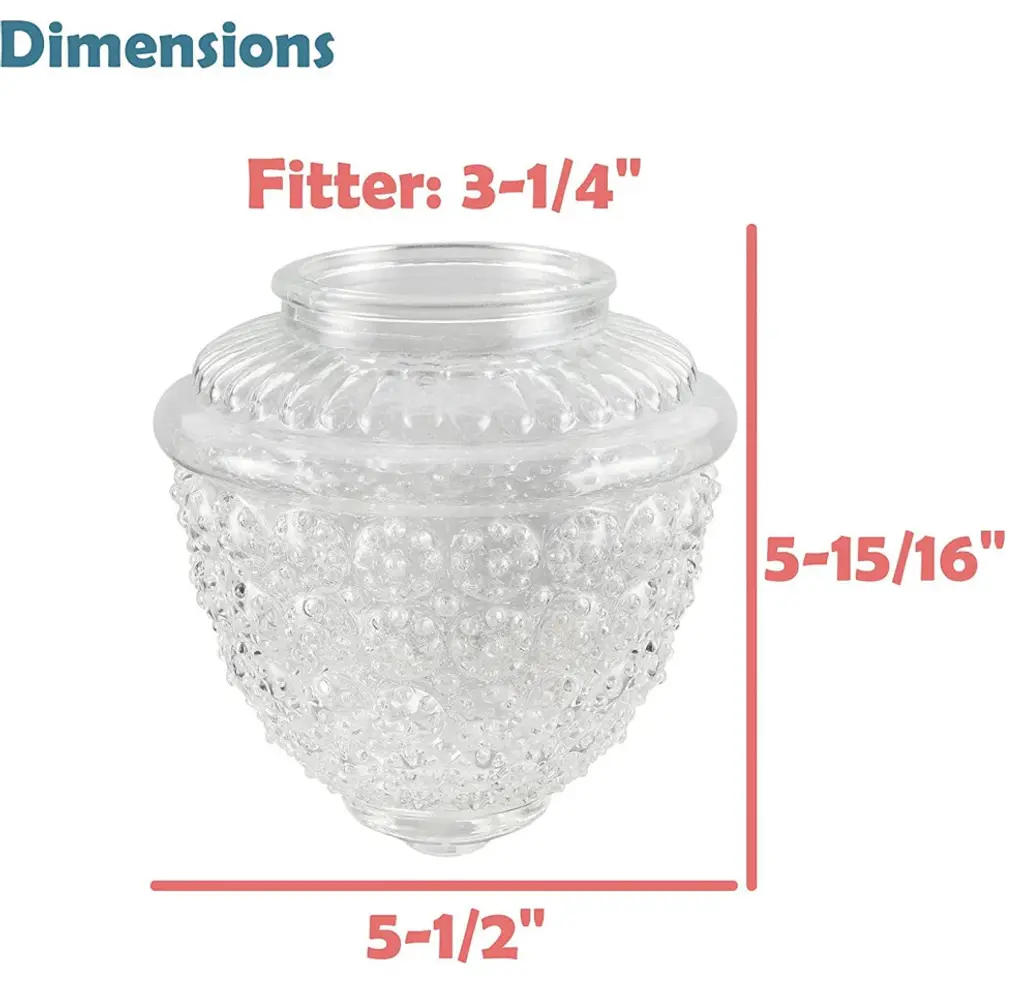Aspen Creative is dedicated to offering a wide assortment of attractive and well-priced portable lamps, kitchen pendants, vanity wall fixtures, outdoor lighting fixtures, lamp shades, and lamp accessories. We have in-house designers that follow current trends and develop cool new products to meet those trends.Product Detail• Aspen Creative 23602-01• Clear Pineapple Glass Shade For Lighting fixture/Pendant/Wall Lamp• 5-1/2"Dia x 5-15/16"H / Fitter 3-1/4"• Ships in a 1 pack.Aspen Creative Item 23602-01