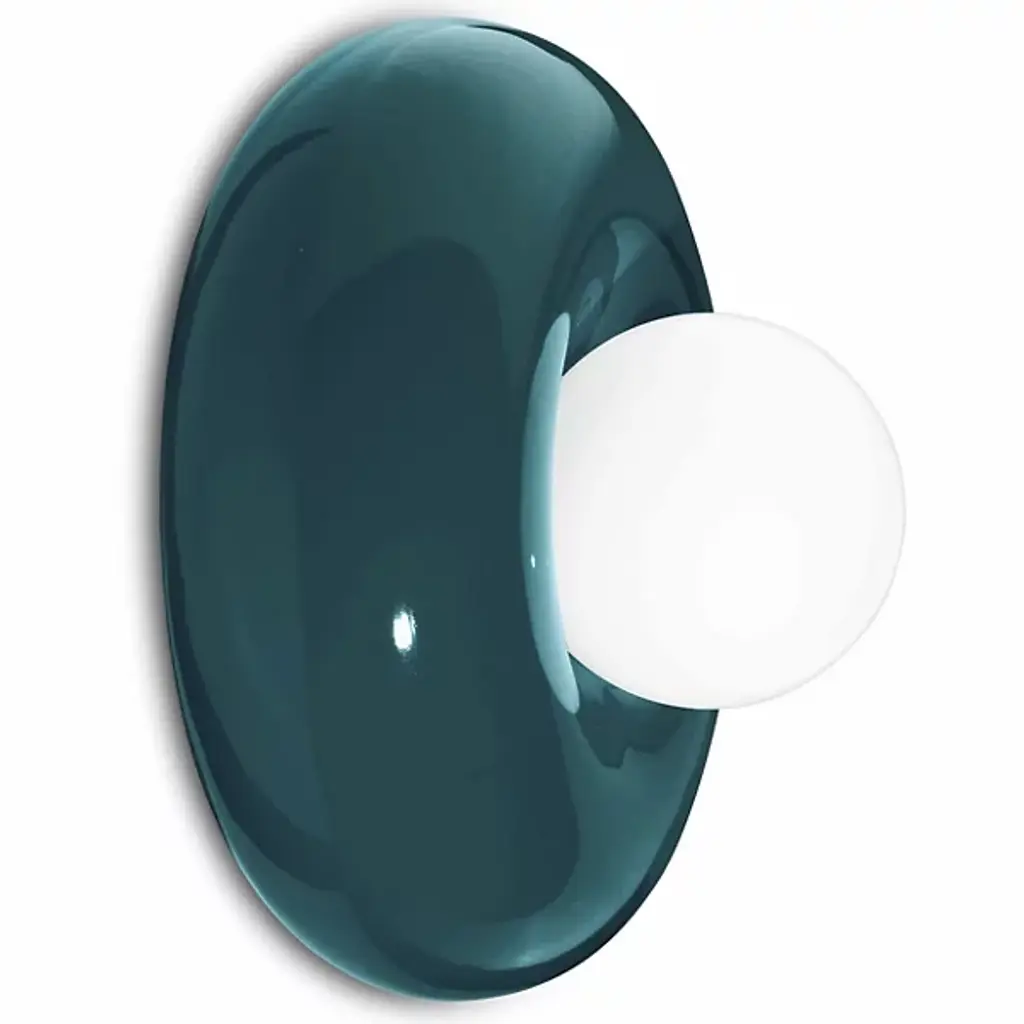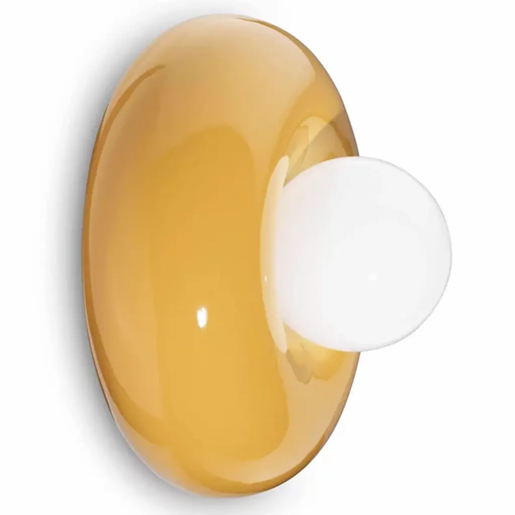 28sp wall lamp by BocciDimensions: Diameter 16.5 x H 11.5 cm Materials: blown glass, electrical components, metal mounting plateLamping: : 1.5w LED or 20w xenon. Non-dimmable. Also available in different sizes. All our lamps can be wired according to each country. If sold to the USA it will be wired for the USA for instance.The ‘sp’ designation in this variation on the 28 refers to it being surface-mounted. This surface light has a paintable 115mm (4.5”) in diameter mounting plate designed to be mounted on walls as well as ceilings. 28 is an exploration of specificity in manufacturing. Instead of designing formitself, here the intent was to design a system of making that yields form.Individual 28 pendants result from a complex glass blowing technique whereby air pressure is intermittently introduced into and then removed from a glass matrix which is intermittently heated and then rapidly cooled. The result is a distorted spherical shape with a composed collection of imploded innershapes, one of which acts as a shade for the light source.Standard 28s are made with clear glass exterior spheres and milk whiteinterior lamp holder cavities. 28s are possible with infinite versatility in colorcompositions, sizes, and shapes.Bocci is a design and manufacturing company based in Vancouver and Berlin. Founded in 2005 under the creative directorship of Omer Arbel, Bocci is committed to fostering a lateral and open-ended relationship between creative direction and craft. The company launched with one lighting design, ‘14’, which became an instant classic and remains a design staple and bestseller. Bocci’s growing portfolio of sculptural lighting is developed, engineered, and fabricated in-house, through an infrastructure calibrated to provide full control over technique, quality, and scale.In 2015, Bocci transformed a historic Berlin building into a showroom and archive. ‘Bocci 79’ inhabited a 2,200 m² / 23,600 sq ft former courthouse, constructed in 1896, and showcased over a decade of works by Omer Arbel, ranging from pieces in progress, prototypes, and ideas, to the complete range of catalog pieces developed for Bocci.