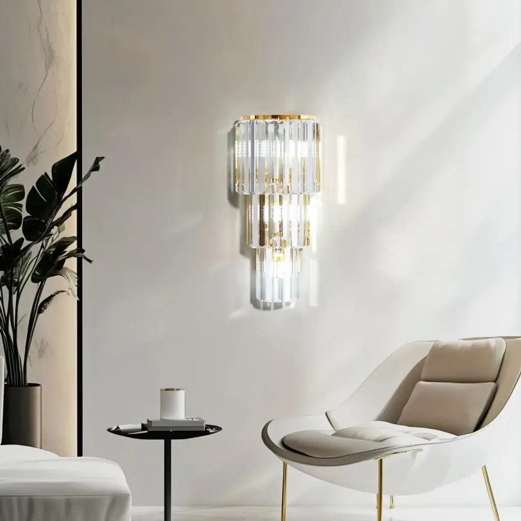 3 Layer Crystal Wall Sconces Living Room Bedroom Crystal Lamps Light Fixtures