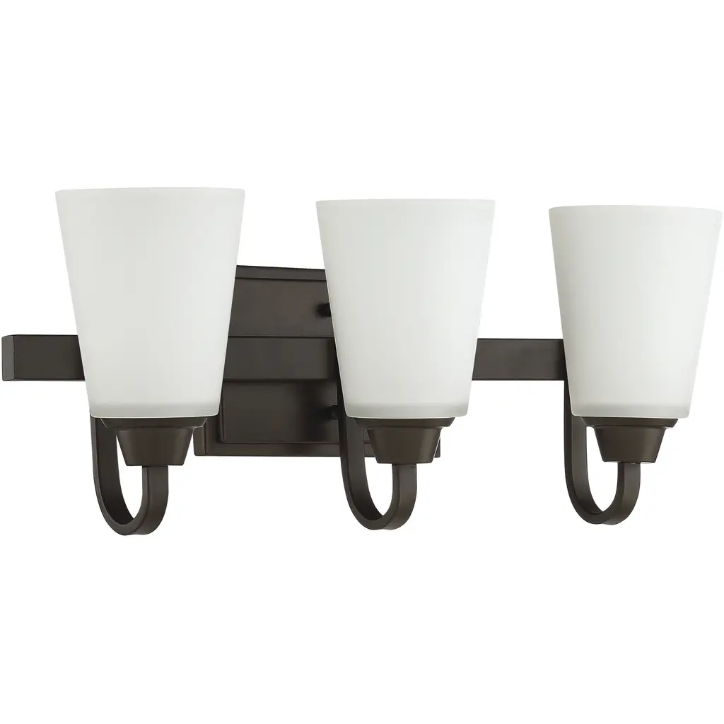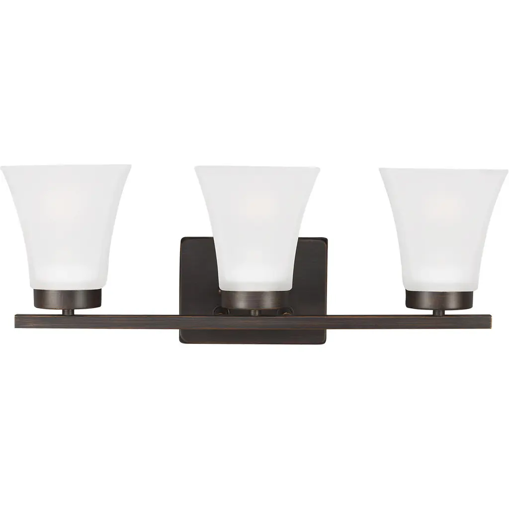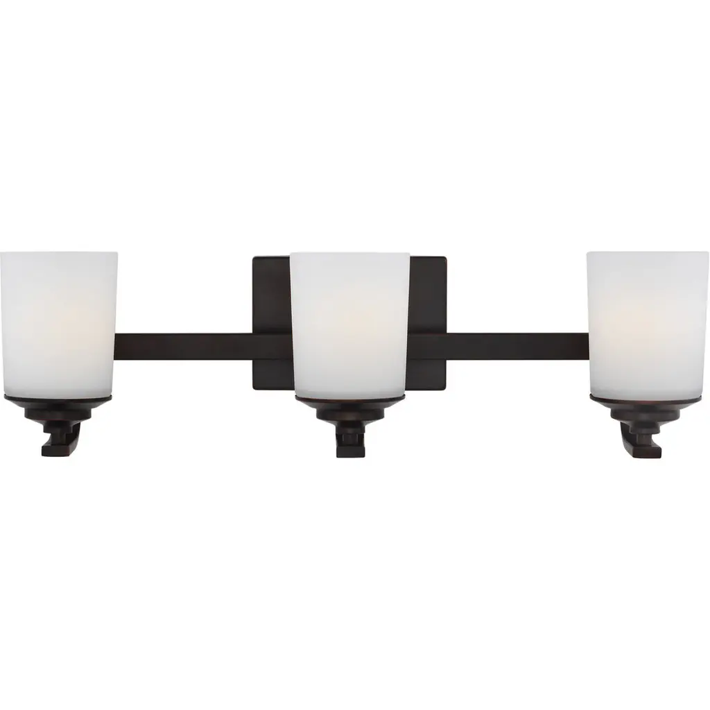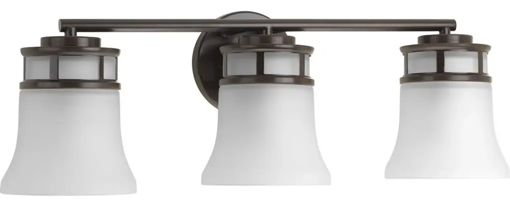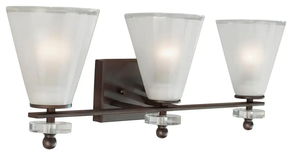 3 Light Bath Bracket, Antique Bronze, Clear Outer & Sandblast Inner Glass