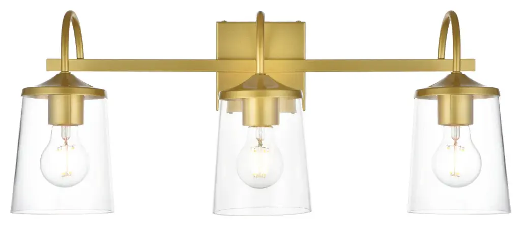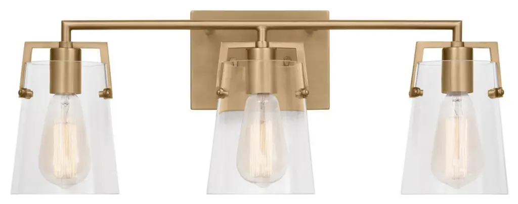 3 Light Brass And Clear Bath Sconce