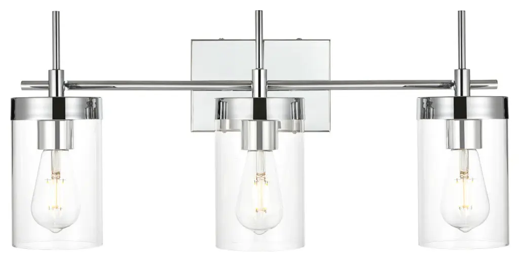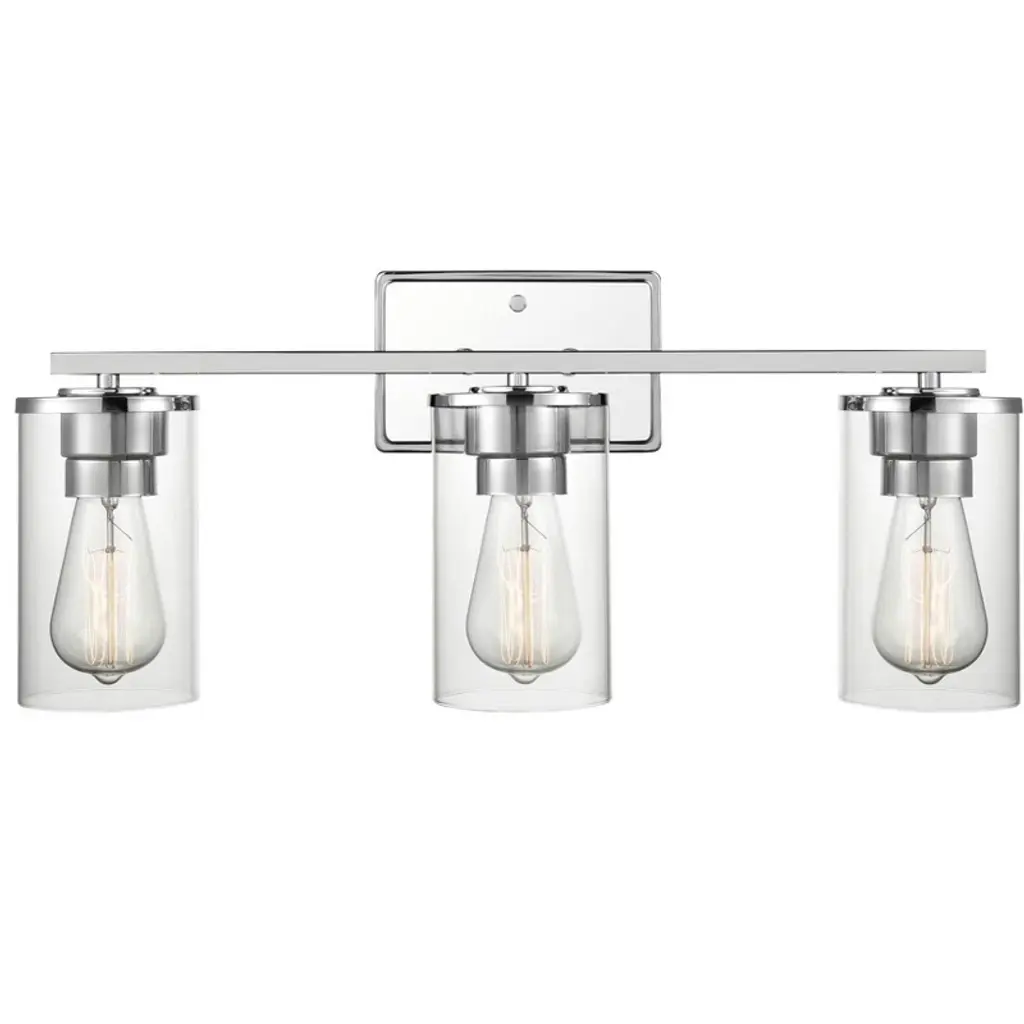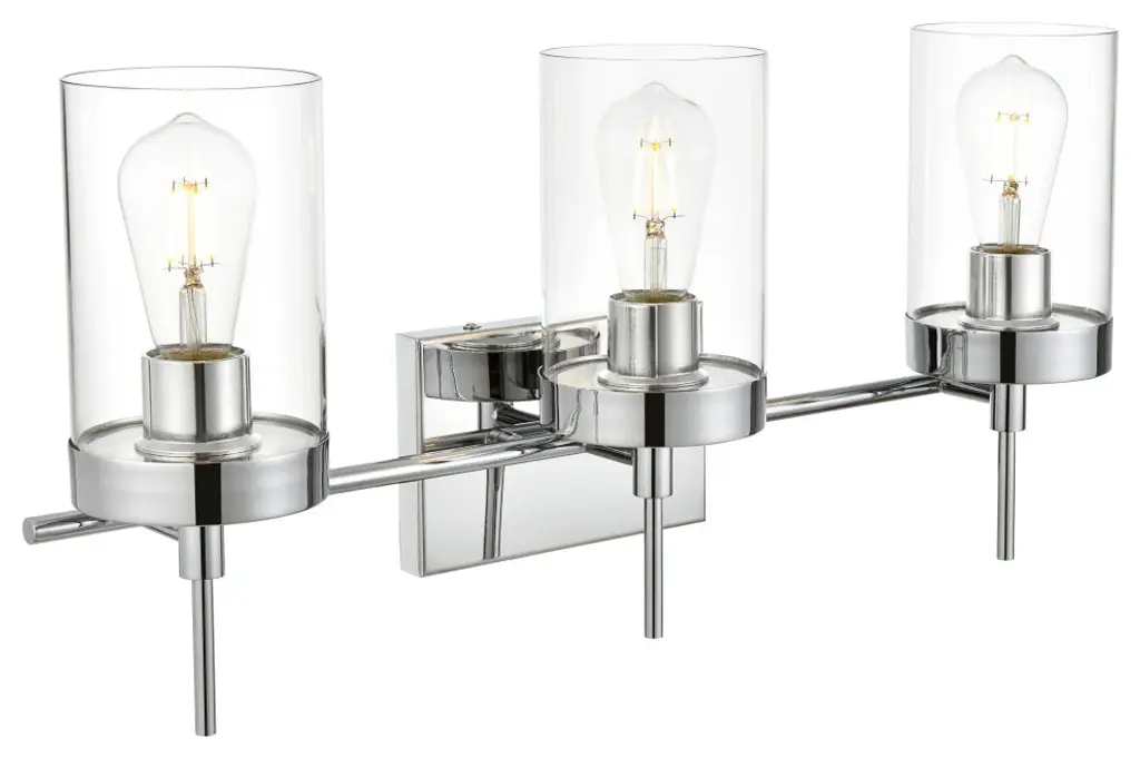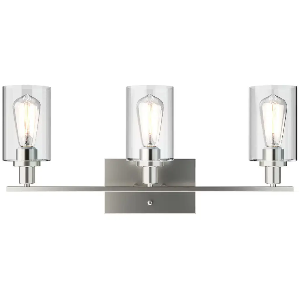 Defined by curved metal arm extends to suspend the clear bell glass shade. A contemporary stunner, it shows off the straight line details from the backplate and the streamline thin metal arm. Compatible with dimmers, so you''ll have the right amount of light in any given time of the day. Completely versatile, you can place this wall light as an uplight or downlight. Rated for use in damp locations, this will work perfectly over a vanity in your bathroom.illuminated by 3 E26 bulbs, light bulbs not includedcrafted with Iron and Glassbackplate measures 7.1 inches wide x 0.8 inches high x 4.7 inches deepcan be installed as an uplight or downlightdimmable, compatible with a dimmer switch (not provided)hardwired, professional installation recommendedClear glass shade filter light from the straight metal armed sconce