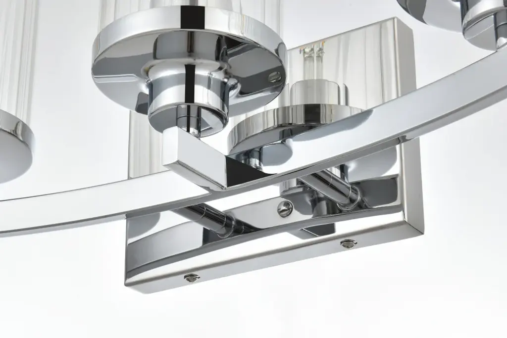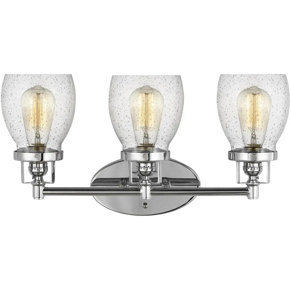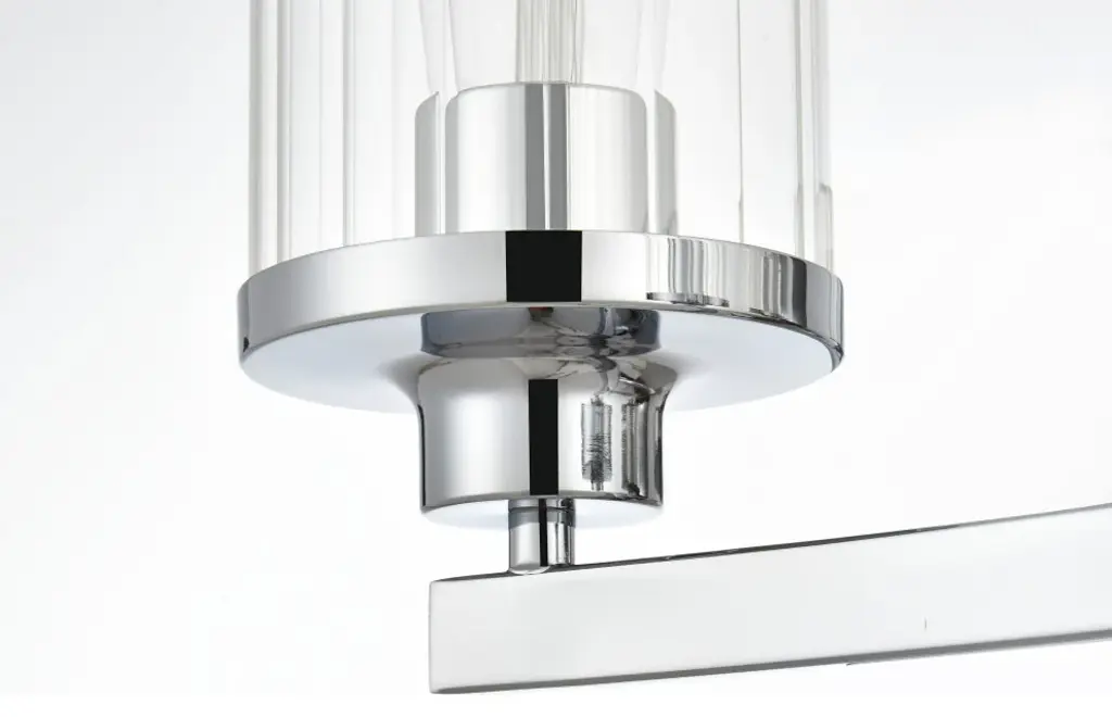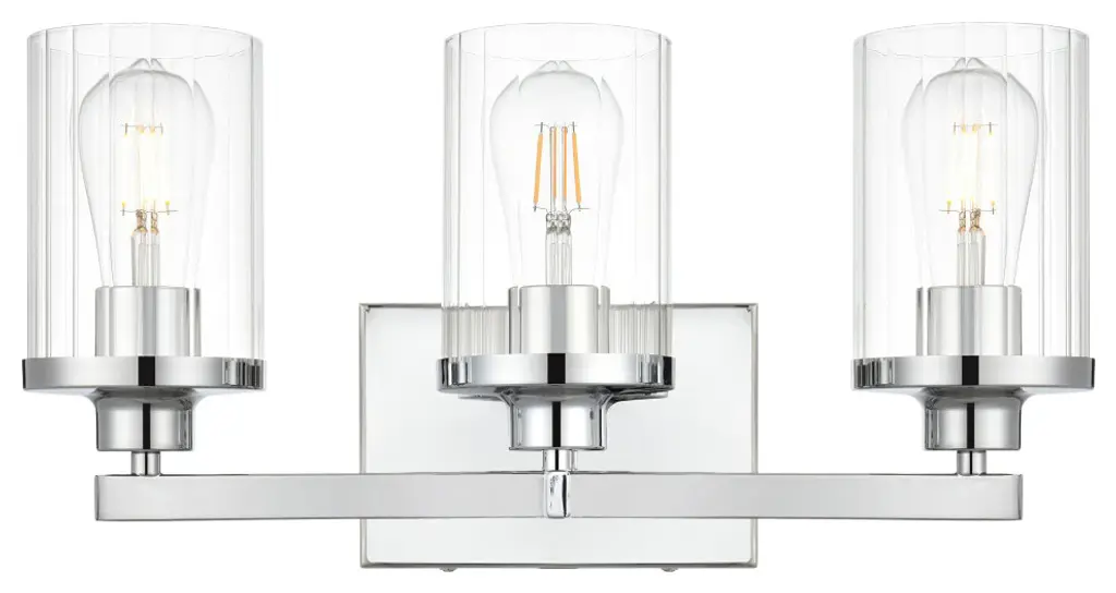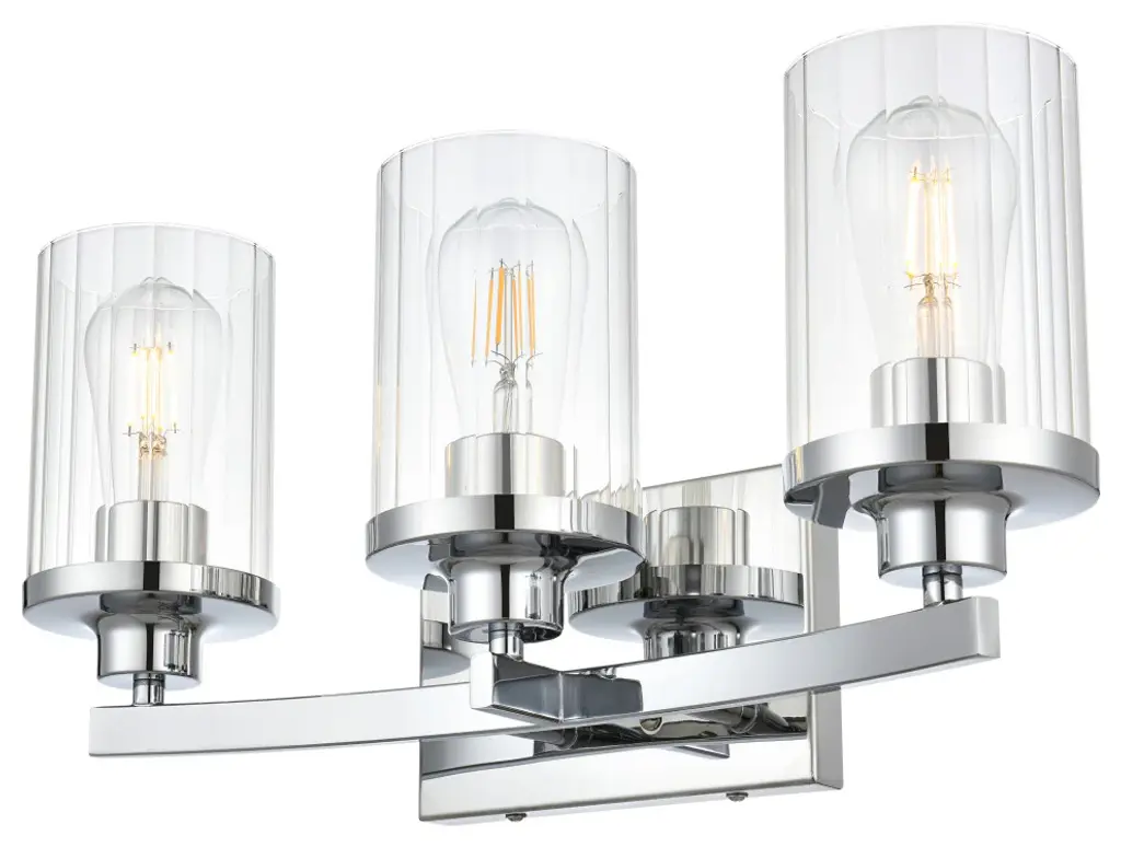 The artful allure of modern sculpture with the function of a light fixture. This glass and metal combination is a perfect example of a modern design. Compatible with dimmers, so you''ll have the right amount of light in any given time of the day. Available in multiple finishes. Completely versatile, you can place this wall light as an uplight or downlight.illuminated by 3 E26 bulbs, light bulbs not includedcrafted with Iron and Glassbackplate measures 7.1 inches wide x 0.8 inches high x 4.7 inches deepcan be installed as an uplight or downlightdimmable, compatible with a dimmer switch (not provided)hardwired, professional installation recommendedclear glass shade filter light from the straight metal armed sconce