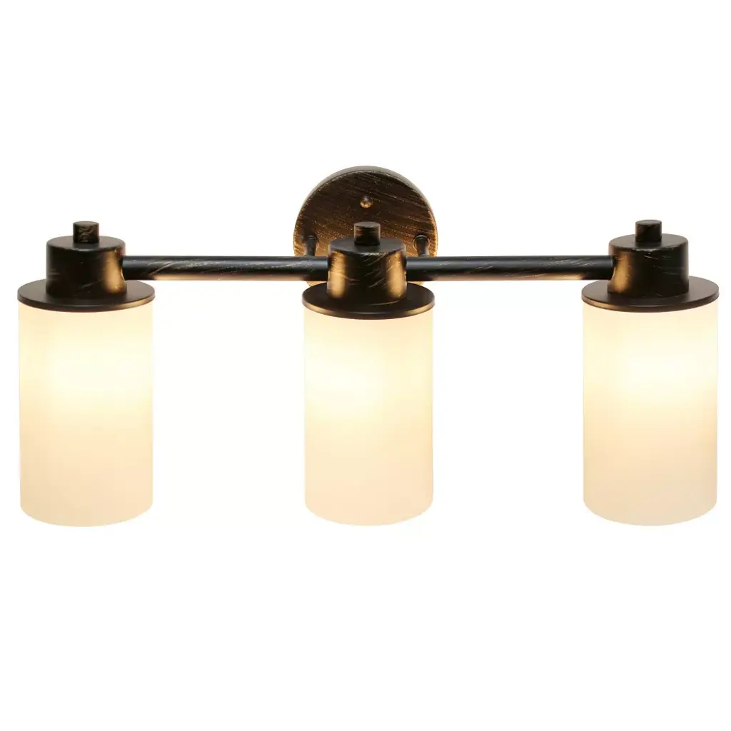 3 Light Metal And Opaque White Glass Shade Vanity Wall Light Fixture With Round Backplate Antique Brass - Lalia Home: Etl Listed
