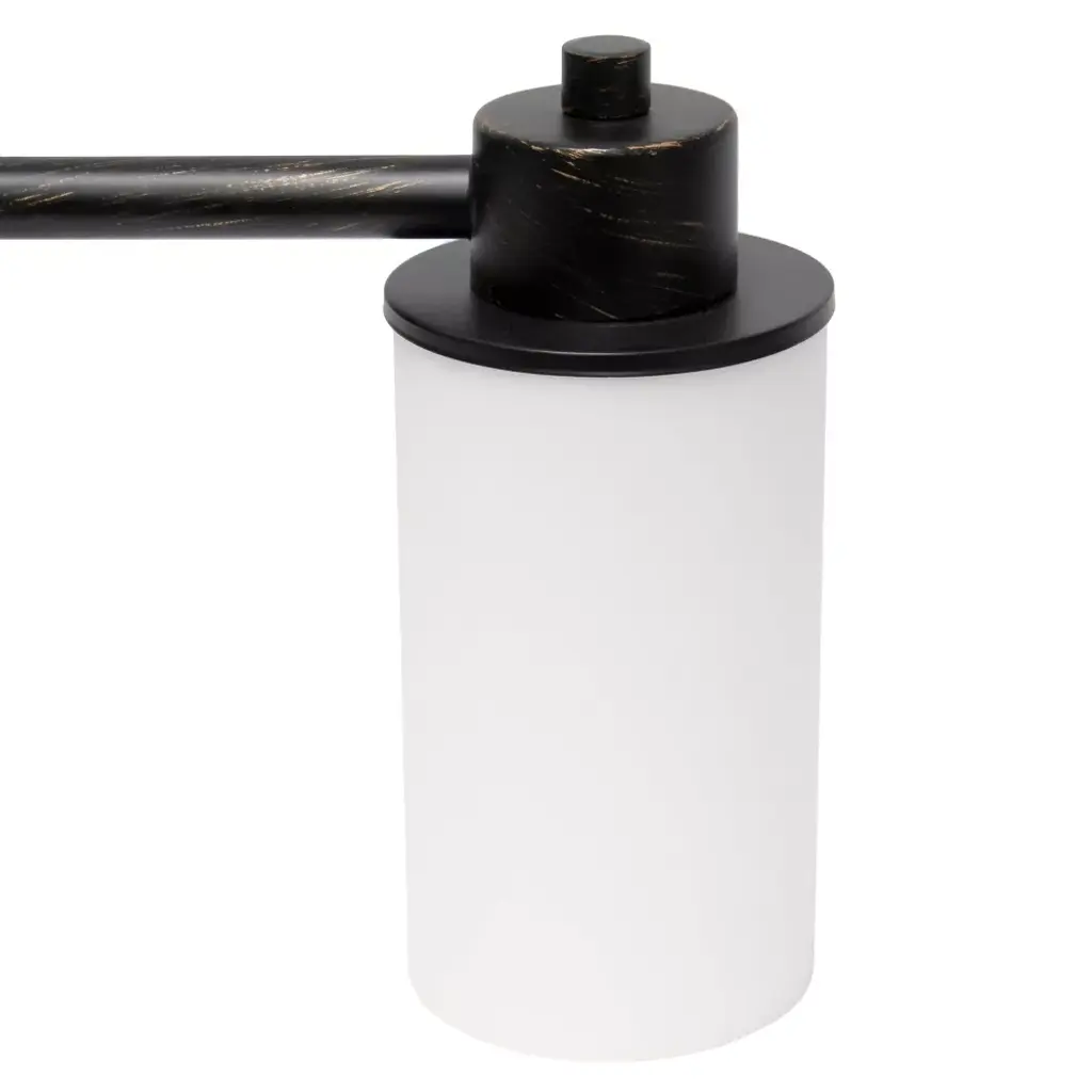 This lovely three light 20.75" vanity fixture has been carefully designed to serve both your lighting and decor needs in a sophisticated and contemporary manner. Three identical opaque white shades are held in place on a straight metal bar by matching metal socket holders in the finish of your choice. Perfect for your bathroom, hallway, bedroom, foyer, or above your vanity!