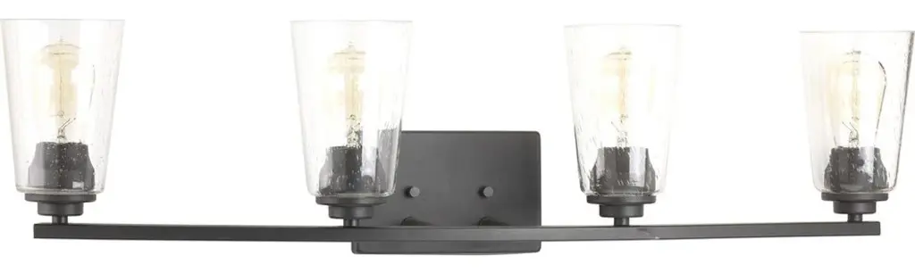 A new category of vintage modern fixtures takes center stage. Delicate details and warm finish options, including Graphite and Brushed Nickel, create statement making focal pieces for a variety of interiors. Debut provides a fitting stage to feature nostalgic, vintage lamps. Glass accessory shades in clear or frosted seeded finishes are available to complement traditional incandescent or energy efficient lamps.Features: A uniquely vintage modern feelDelicate details with a warm finishMakes a great statement piece for a variety of interiorsOptional clear and seeded glass shades available P860002 & P860003Lighting Specifications: Four medium base lamps, each 60w max.Bulbs Included : NoLamp Type Basic: IncandescentLamp Type Actual: A19Listed: cULusListed Location: DampSocket Base: E26Product Specifications: Warranty: 1 year warrantyGlass: Glass Shape: N/AFinish Color: GraphiteFinish Type: PaintedSize: 30-1/4" W., 7-7/8" ht. Extends 8". H/CTR 5-5/8".Wire Length: 6"Chain Stem and CTC Mounts Included: No