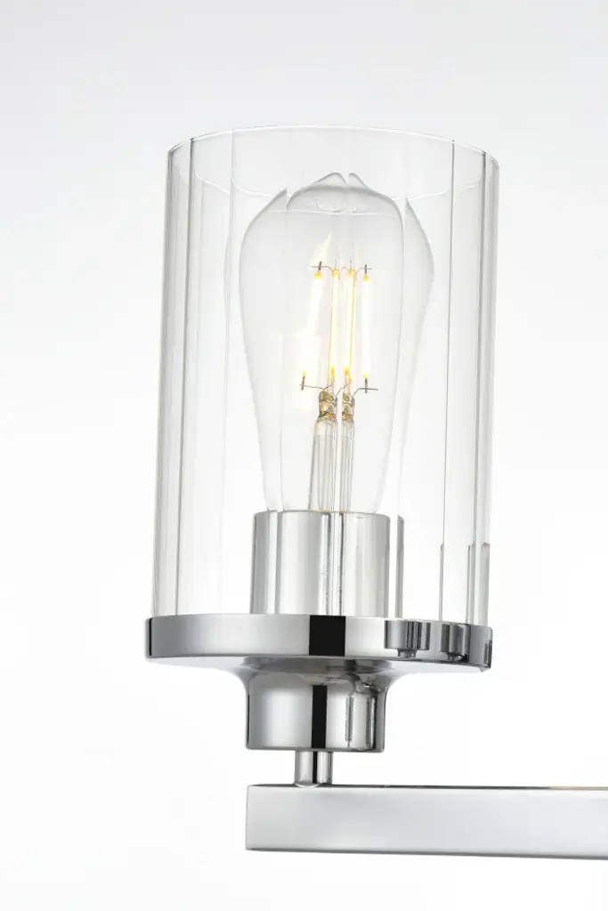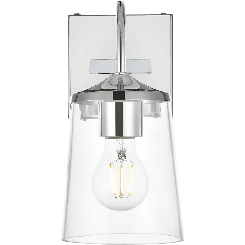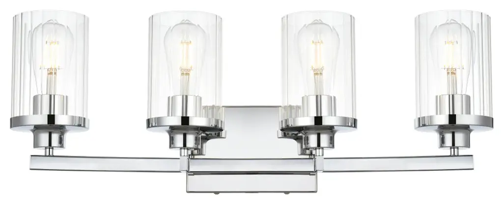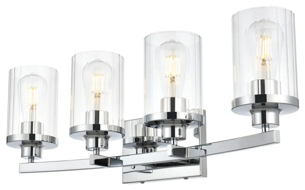 The artful allure of modern sculpture with the function of a light fixture. This glass and metal combination is a perfect example of a modern design. Compatible with dimmers, so you''ll have the right amount of light in any given time of the day. Available in multiple finishes. Completely versatile, you can place this wall light as an uplight or downlight.illuminated by 4 E26 bulbs, light bulbs not includedcrafted with Iron and Glassbackplate measures 7.1 inches wide x 0.8 inches high x 4.7 inches deepcan be installed as an uplight or downlightdimmable, compatible with a dimmer switch (not provided)hardwired, professional installation recommendedclear glass shade filter light from the straight metal armed sconce