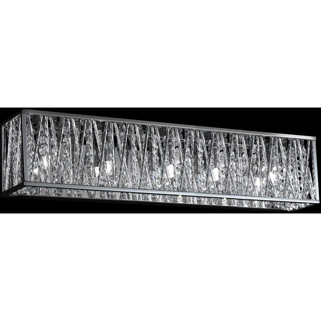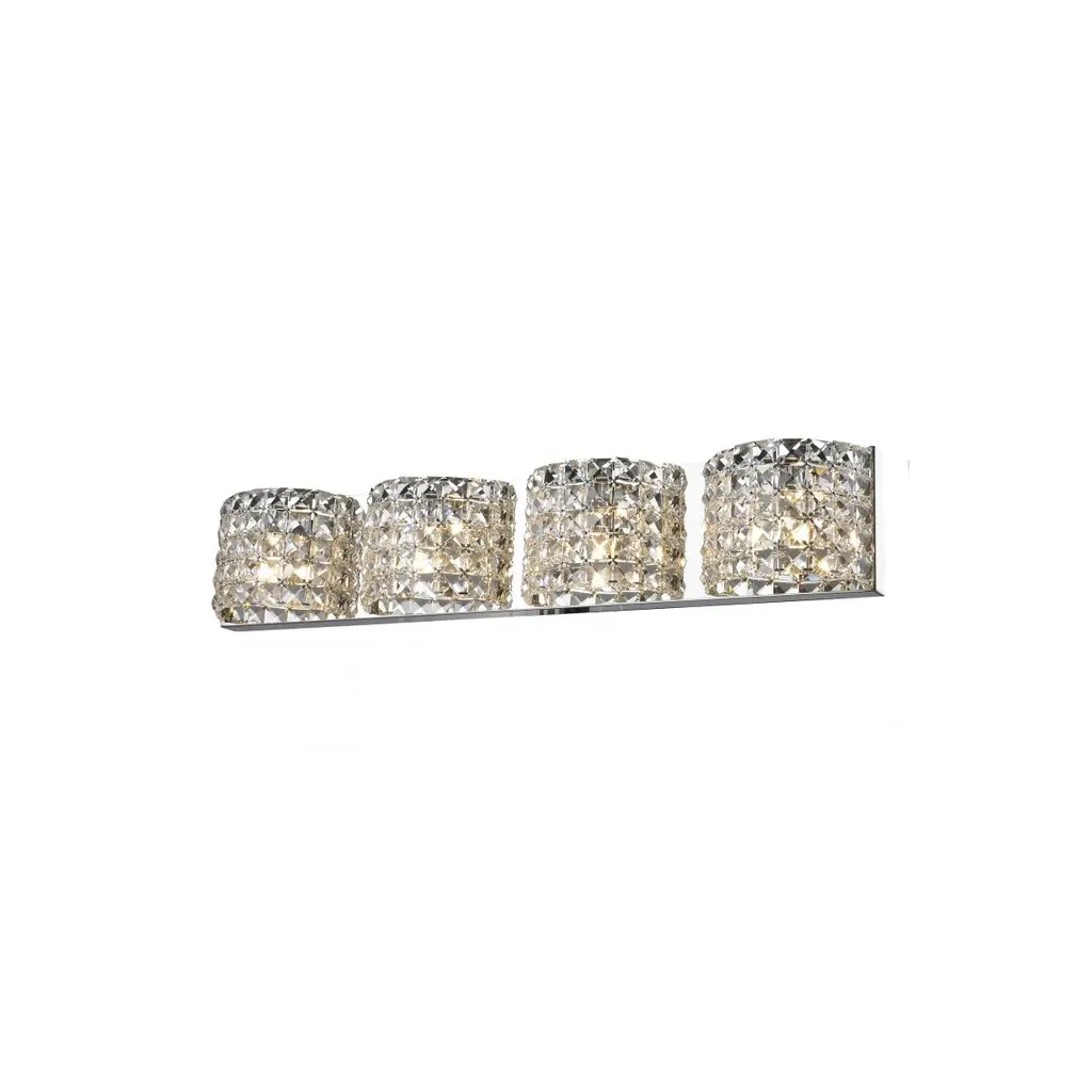 Four light clear crystal covered wall sconce with a chrome frameColor: ChromeSize: L27" H5"Materials: Stainless SteelLighting Specs:Commercial Use: YesUL Certified: YesETL Certification: NoLight bulbs not includedNumber of Bulbs: 4Bulb Type: G9Max Wattage: 40