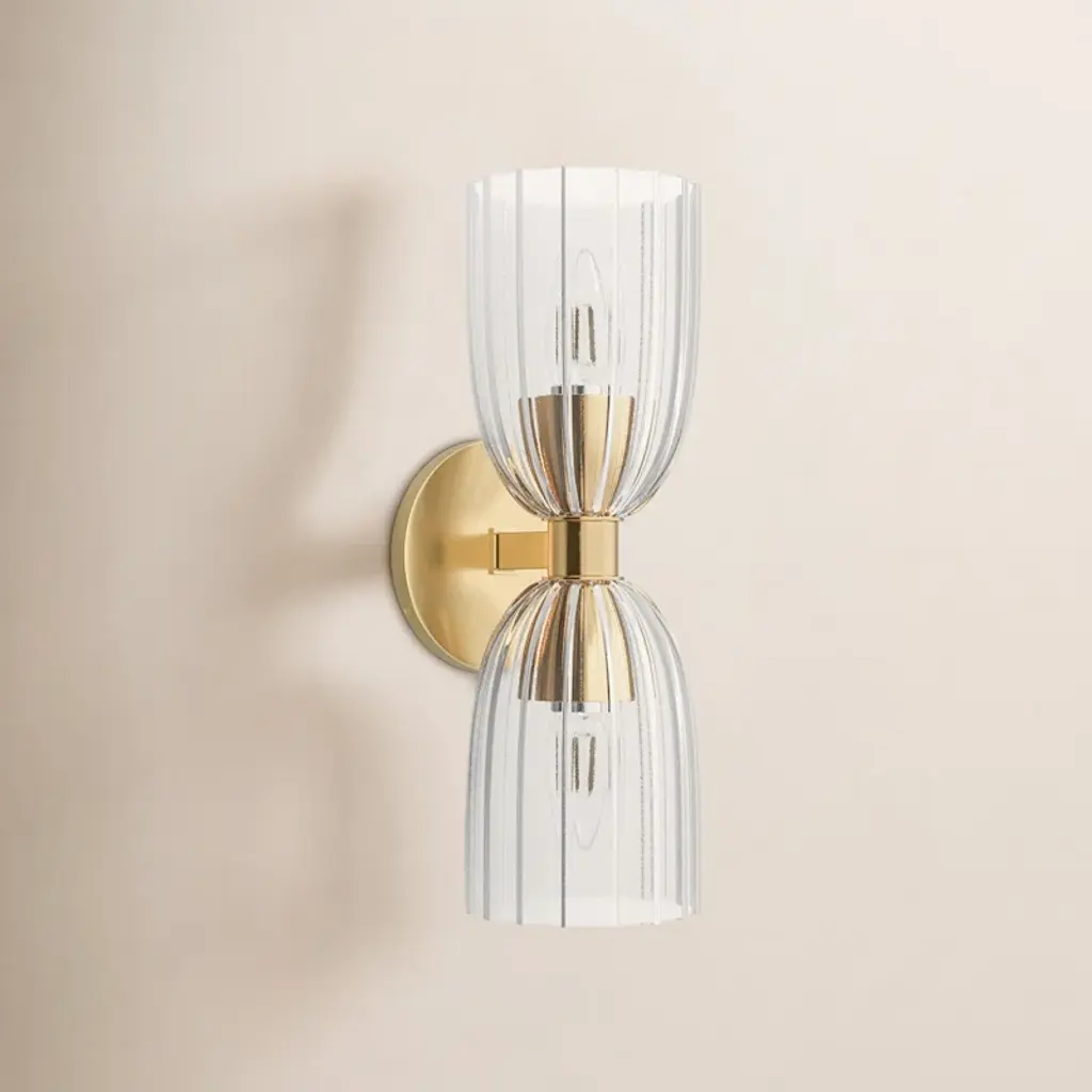 Sleek and precious, this exclusive sconce pairs the harmony of seamless curves to fine details of delicate opulence. Its elegant frame consists of an ultra-thin iron sheet wrapped around an elongated socket to which are fitted two E14 bulbs oriented in opposite directions. The shade boasts a classy taupe lacquer on the outside, while it is preciously covered with gold leaf on the inside, creating mesmerizing shimmers sure to elevate any room.