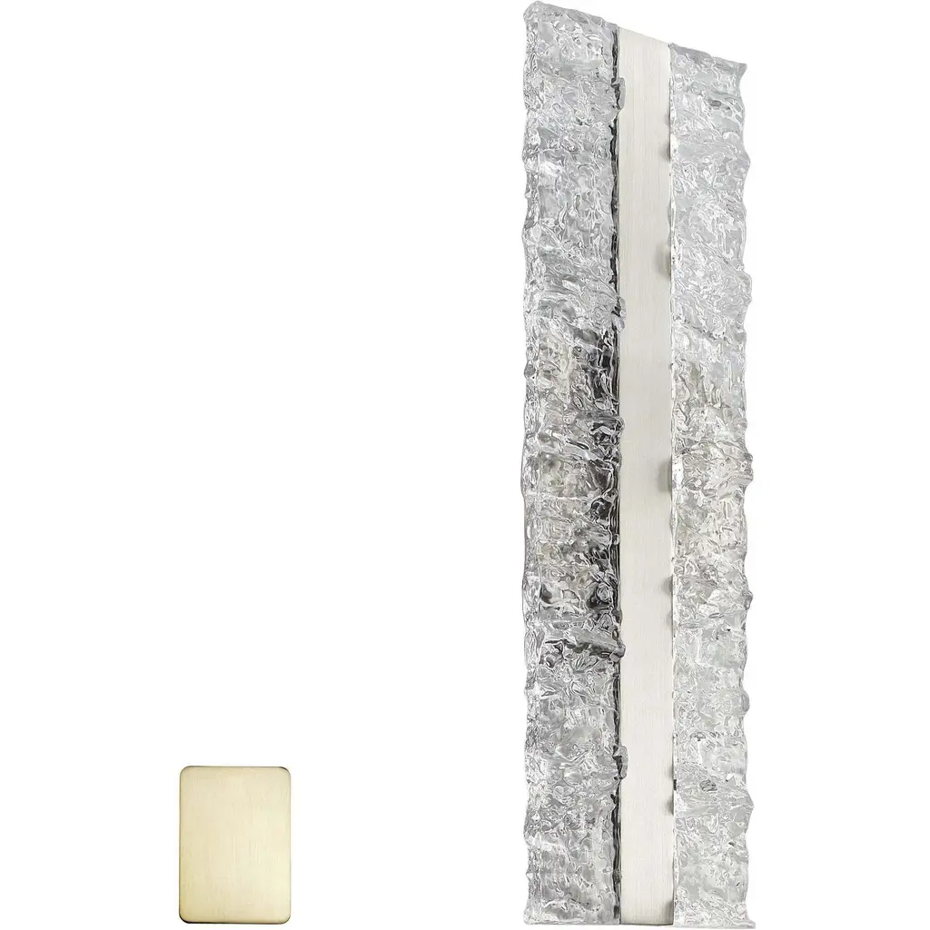 Synthesis of minimalist flair and refined opulence, this splendid sconce makes for the perfect piece to provide soft ambient light spots in contemporary interiors. Its simple yet captivating design consists of two curved iron bands that slightly overlap creating a seductive asymmetrical composition, whose visual allure is highlighted by the shimmering finish of the silver leaf cover. It fits two G9 bulbs.