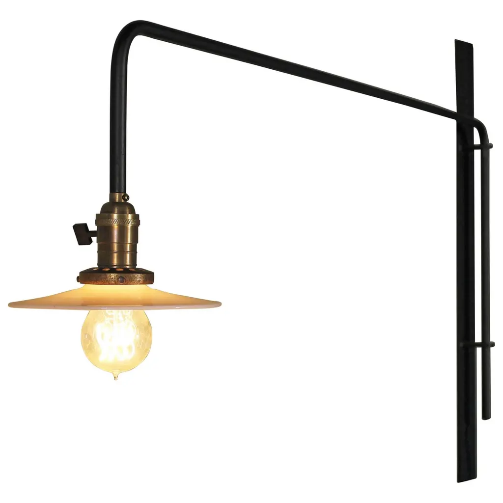 Dramatic proportions lend dynamism to the essential character of this sconce, exuding industrial charm from every inch of its silhouette. Fashioned of iron and finished with an alluring antiqued finish, the frame incorporates a discreet rectangular wall plate and an angular stem that dramatically extends frontwards, where it connects to the matching socket by means of a practical joint. It fits a single E27 bulb (not included).