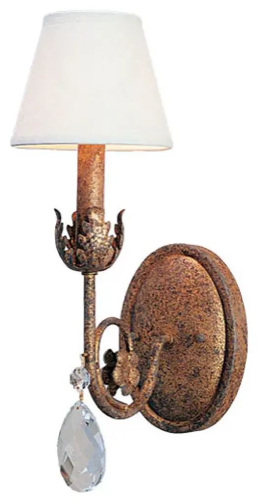 Exquisite styling and luxurious charm are reflected in the Antonia Wall Sconce; adorned with a faux candlelight crowned with a White Linen shade. The decorative accents and Hand-forged Iron Scrolled Arm are featured in an Autumn Leaf finish. The fixture features quality materials and hand-detailed American craftsmanship perfected by years of honored artistry from generations of highly skilled artisans. The Antonia Wall Sconce is included in our American-made; American-designed; handcrafted Traditional Lighting Collection. UL and cUL listed for dry and damp locations; however; we do not recommend installing it in spaces that experience a large amount of moisture due to the fabric shade.