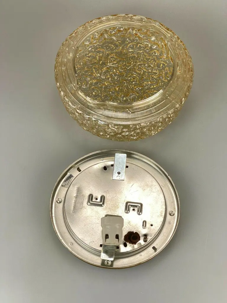 60s 70s lamp light wall lamp Limburg Plafoniere Space Age Design 60sObject: wall lampManufacturer: Glashütte LimburgCondition: goodAge: around 1960-1970Dimensions:Diameter = 31.5cmHeight = 11.5cmOther notes:The pictures serve as part of the description!Please keep in mind that we are offering used goods for sale here - they are notnew goods - this means that the items may show signs of wear!