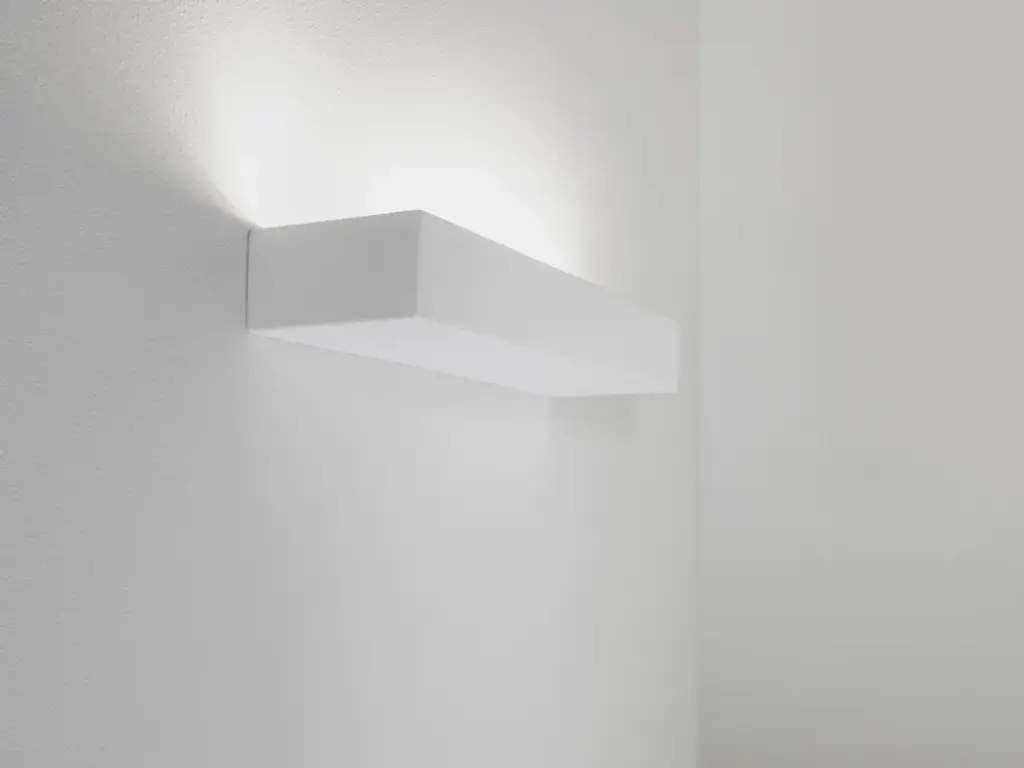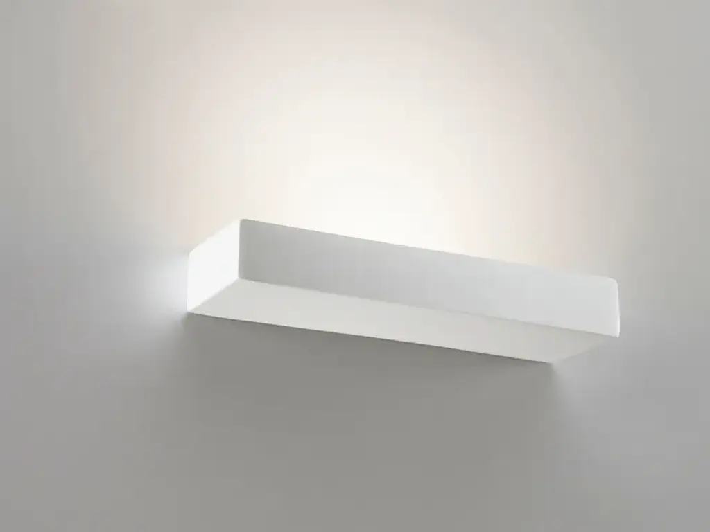 The wall lamps in the 9010 collection are the best choice for contexts that require subtle lighting, combining functionality with design and architecture. The proposals of 9010 catalogue offers solutions marked by the charm of Made In Italy craftsmanship and suitable to meet all style needs, from classic to modern.LED wall lamp made of 9010 CERAMIC with a modern design with single light emission. The light is released from the top side of a rectangular shape and diffused upward. Thanks to its simplicity, this item is perfectly suited to modern and sophisticated environments.