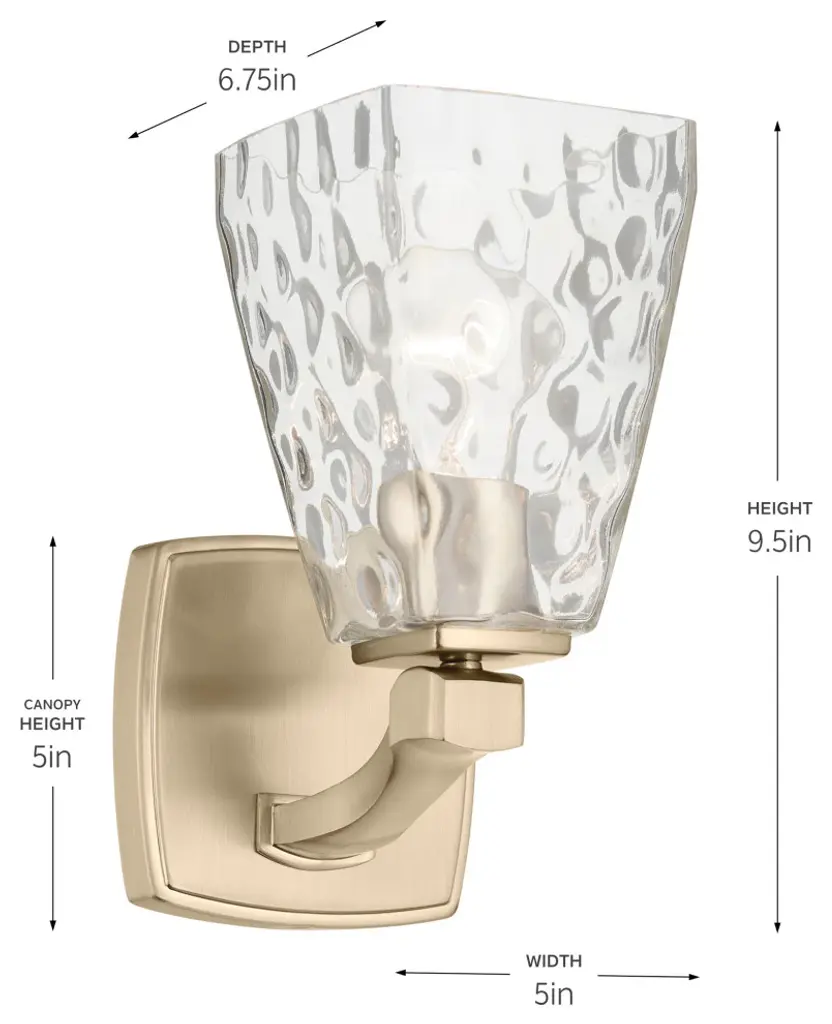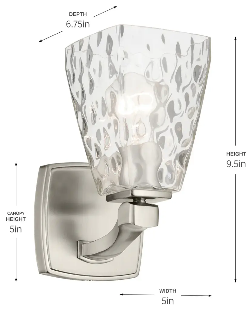 9.5" 1-Light Wall Sconce With Clear Water Glass