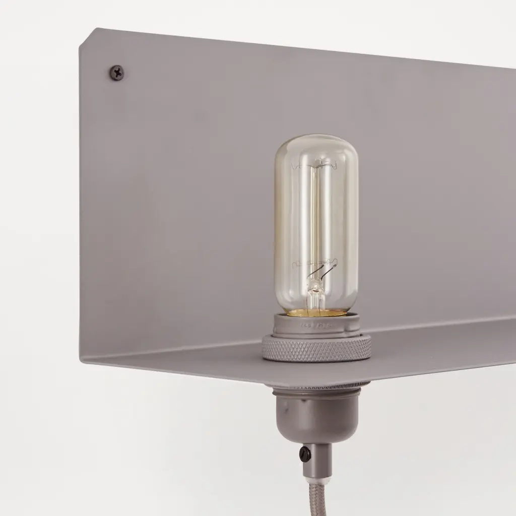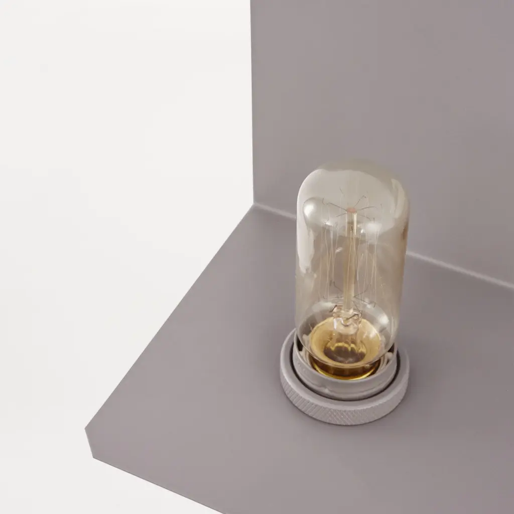 The Frama 90° Wall Light Gray is an ingenious 2-in-1 product designed for modern living spaces. Creative and elegant, the wall light features an aluminum base that doubles as a compact shelf. The exposed light bulb casts a bright glow, complemented by the light gray finish of the powder-coated aluminum. Easy to install on a wall, the light can also be used as a display unit, allowing the user to place a book or other items on the other side of the base. Thanks to the clean geometric design and neutral color, this modern wall light blends into any decor with ease. Comes with pendant and hardware as well as a textile cord with a switch.