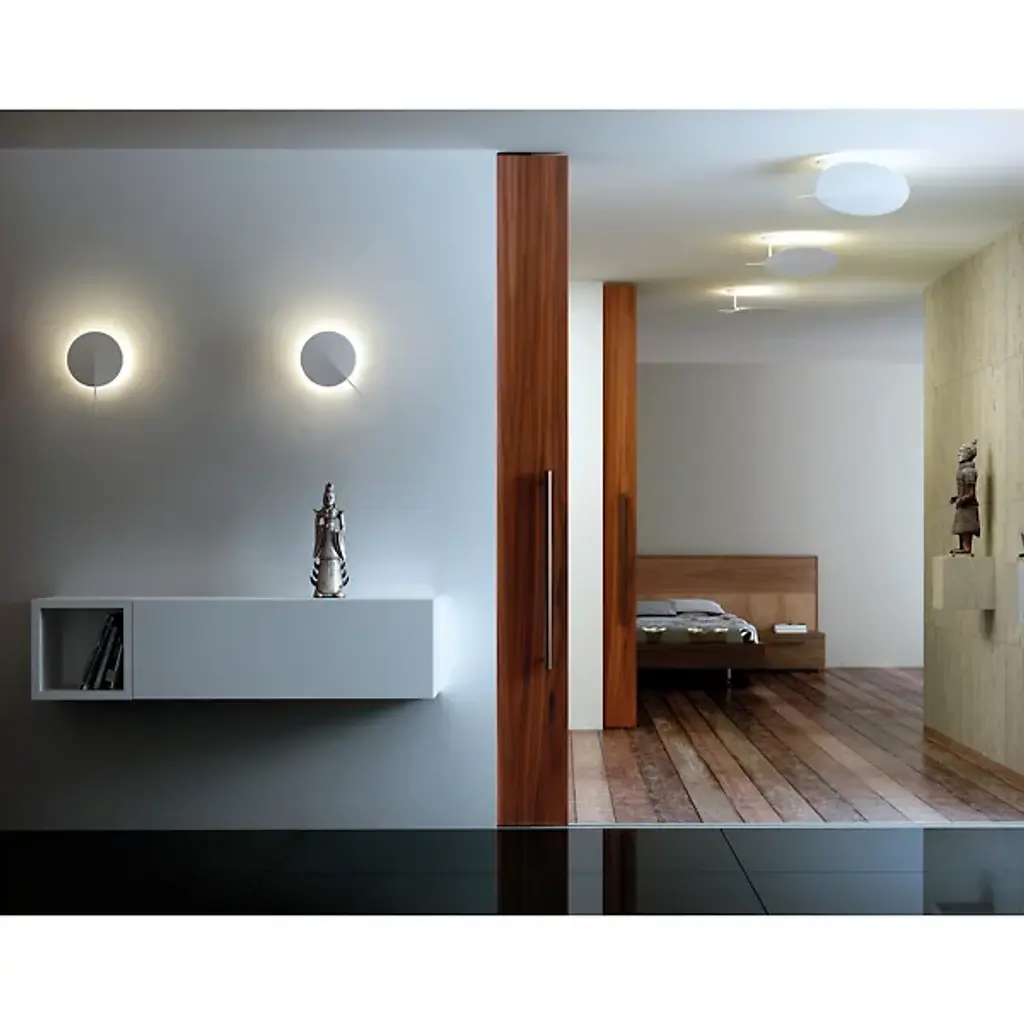 Design by Estudi Ribaudi. Imported from Spain by Estiluz. The A-3220 Obs Wall Sconce is inspired by basic natural forms, separating the necessary from the superfluous to create a truly eco-logical lamp. Its stylized lines and clear references to the world of nature give a simple yet bold touch to the home, like water lilies of light on a stylish, contemporary domestic lake. The T-3220 boasts a really spectacular design. Its circular shades, embellished by an elegant decorative rod with a chrome tip, can be tilted up to 60 degrees to create various lighting effects. This fixture is perfect for modern bedrooms, living and dining rooms, bathrooms, entryways and hallways. ETL and damp location listed.